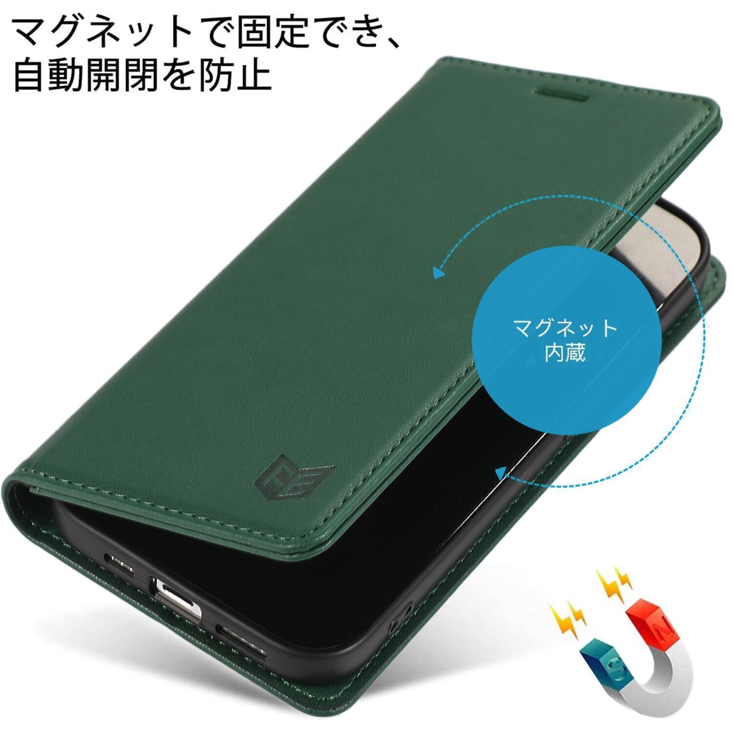 FeeY iphone14 ケース 手帳型 Iphone14 手帳 ケース 耐衝撃TPU素材カード収納 マグネット内蔵スタンド機能付き アイフォン14携帯カバー全面保護 iPhone 14 スマホケース 5G 6.1インチ対応, グリーン