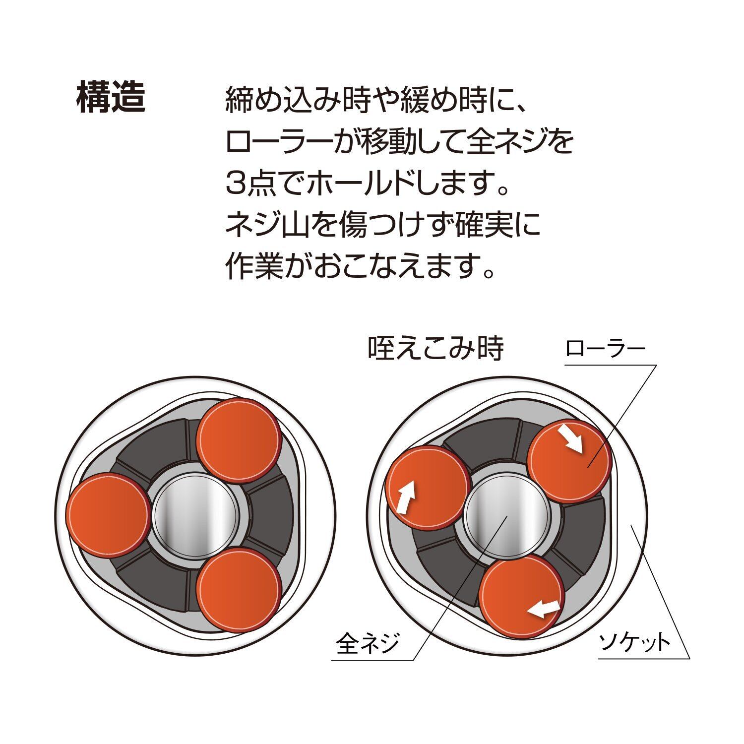 ●3本ローラー構造PAT.でネジを痛めることなくラクラク作業