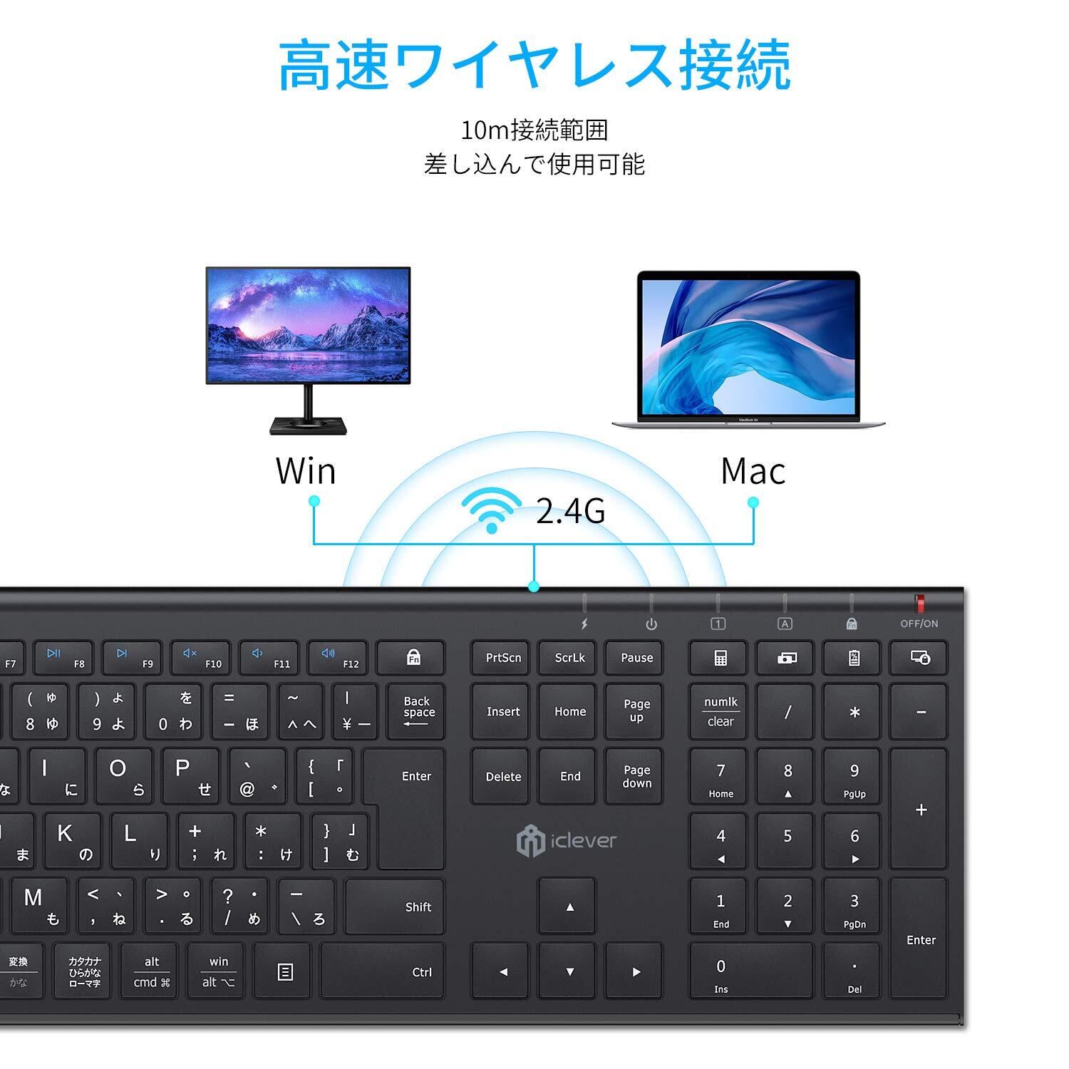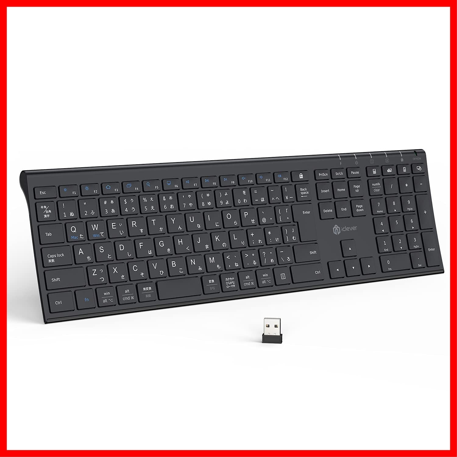 iClever キーボード ワイヤレスキーボード 無線 2.4G(レシーバー付属) 日本語JIS配列 薄型 USB-C充電式 フルキーボード テンキー付き 静音 ウルトラスリム パンタグラフ パソコン PC用 Windows対応 オフィス自宅最適 日本語説明書付き GKJ35B ブラック | hananoki