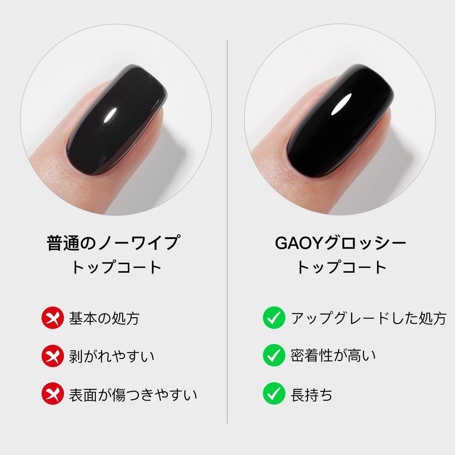 GAOY ジェルネイル トップコート ベースコート セット ノンワイプ 拭き取り不要 UV・LED対応 大容量 16ml 2本セット