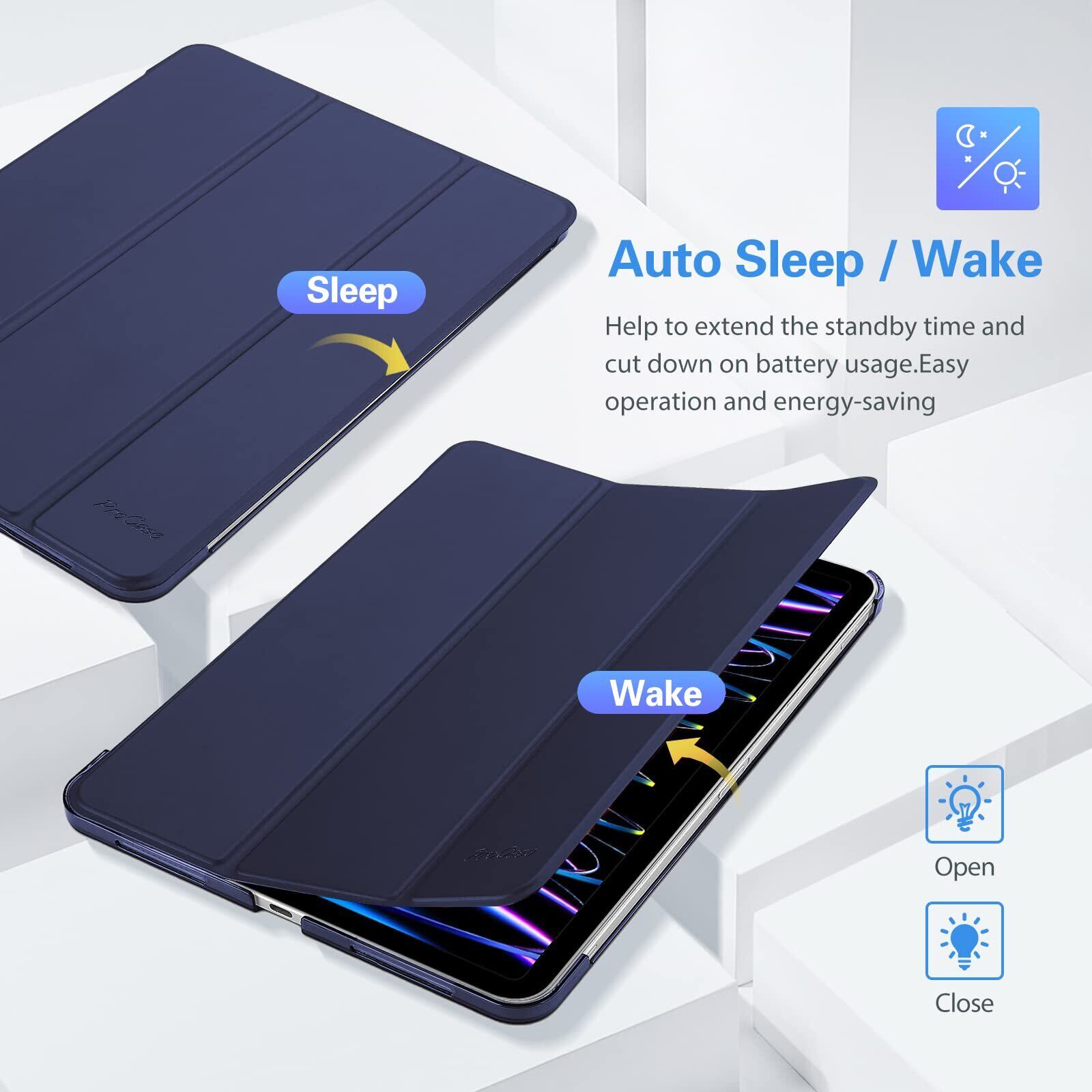 ProCase iPad Pro 11 ケース 第4/3/2/1世代に適用(2022 2021 2020 2018)、[Apple Pencilのペアリングと充電に対応] 三つ折り スタンド スマートカバー - ネイビー
