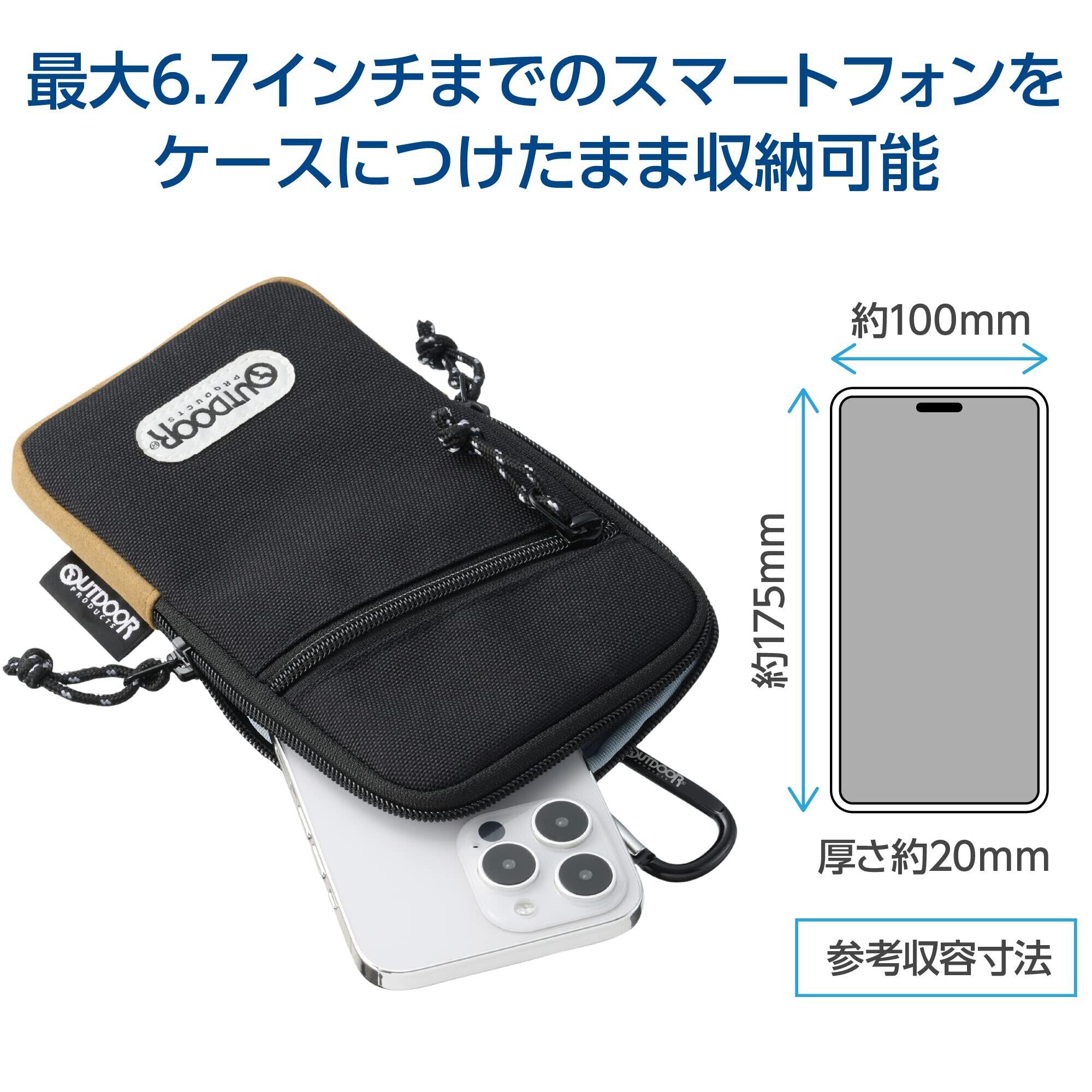ハクバ OUTDOOR PRODUCTS(アウトドアプロダクツ) スマートフォンポーチ05 iPhone 15 Pro Max対応 ブラック 大型 スマホポーチ ショルダーポーチ ショルダーベルト・カラビナ・ベルトループ付 AMZODSPP05BK 4977187282153 | hananoki