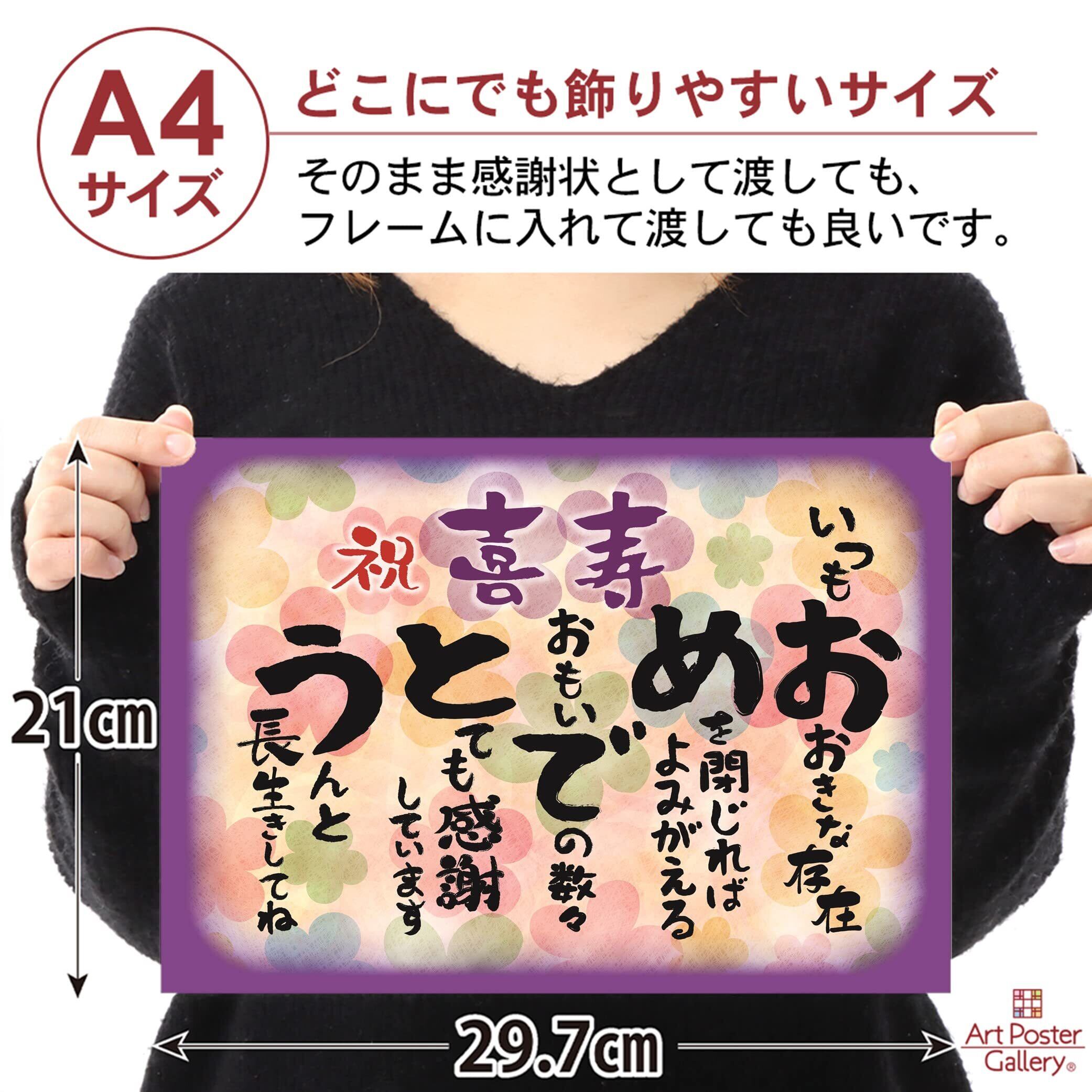 お祝い 誕生日 喜寿 おめでとう A4サイズ (お父さん お母さん おじいちゃん おばあちゃん 祖父 祖母 親) メッセージカード ポエム ギフト 感謝状 表彰状 プレゼント 記念日 パーティー 77歳