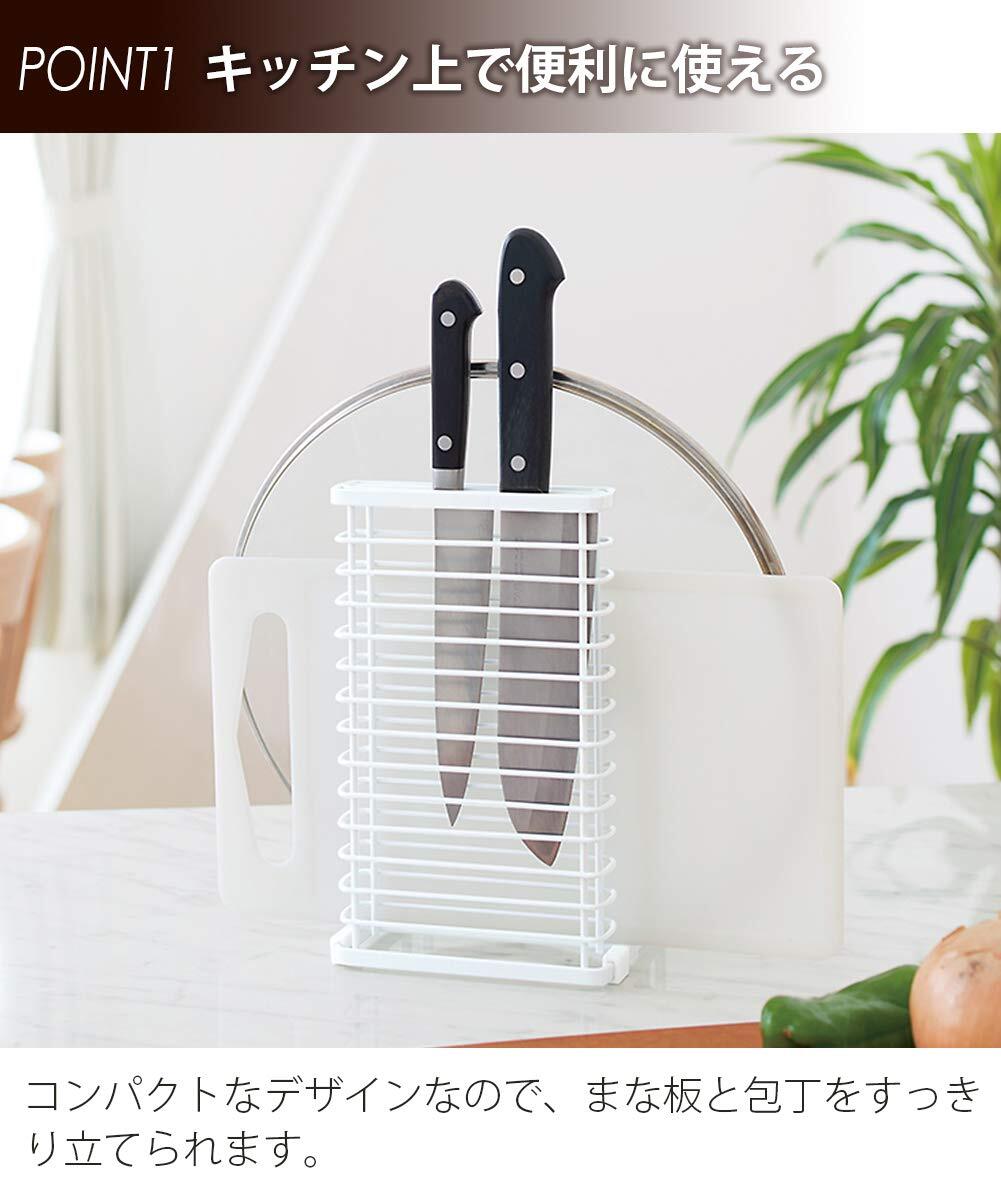 天馬 サビにくいデザイン まな板や包丁を置ける収納スタンド キッチン上で便利に使える収納スタンド すべり止め付き キッチン 収納 鍋ブタ&包丁まな板スタンド ホワイト 約14×15×23cm