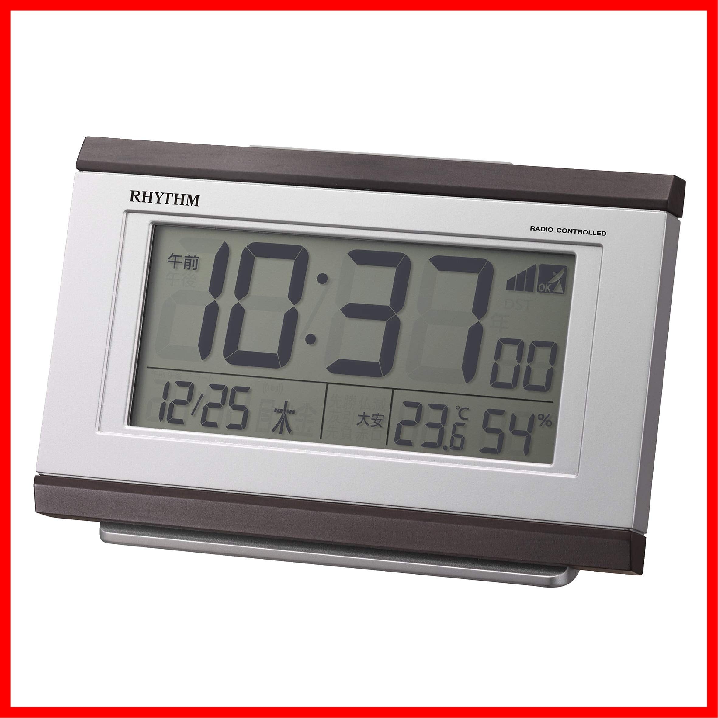 リズム(RHYTHM) 目覚まし時計 電波時計 電子音アラーム 温度 湿度 カレンダー 六曜 ライト付き ブラウン 8RZ161SR06
