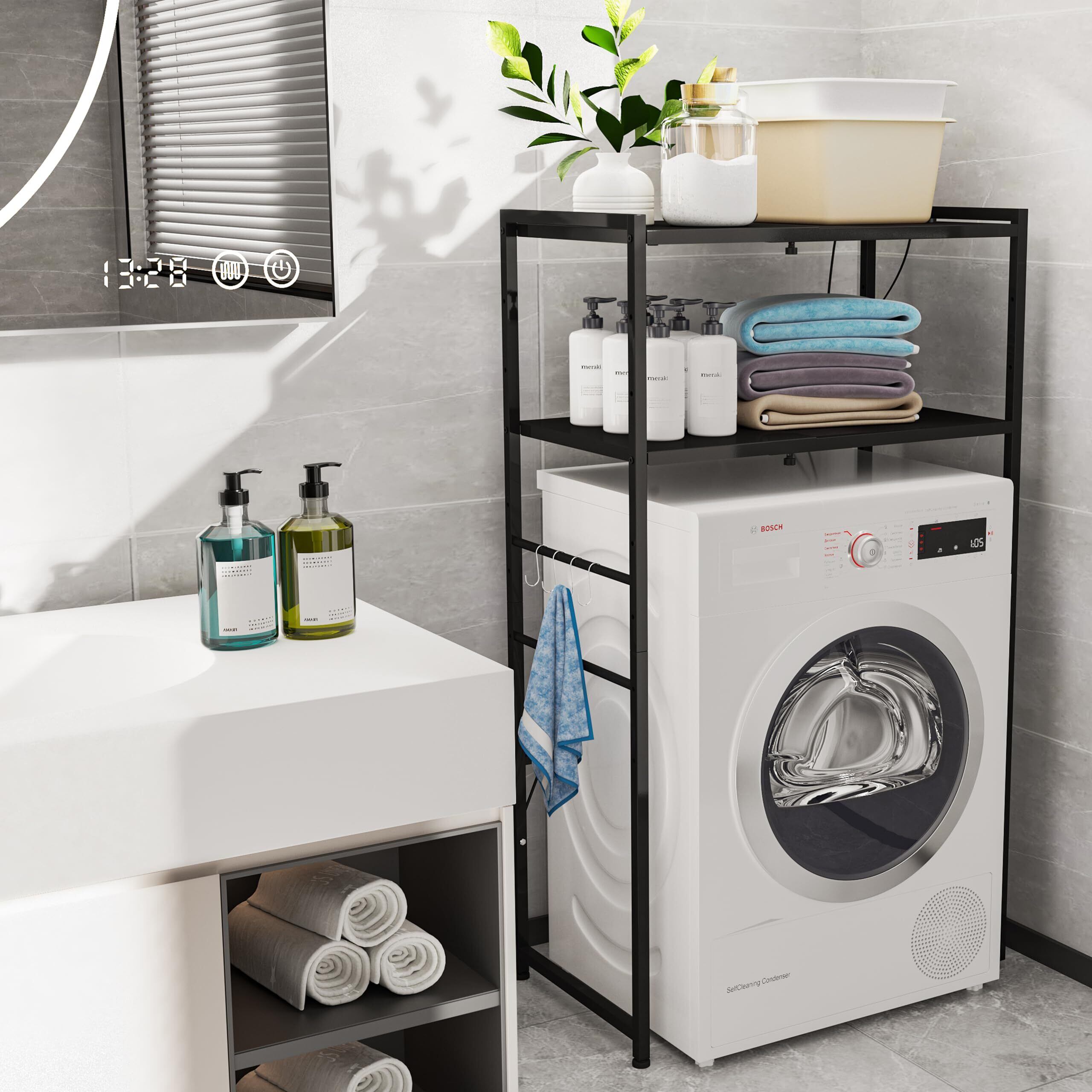 ゴミ箱上ラック 幅60.5-80奥行42高さ129.5cm 多機能横幅伸縮できるコンセント付きキッチンベイカーラック、キッチンラック、レンジ台、オーペンラック、ゴミ箱収納、プリント台ラック、可動式棚板多段調整、Sフック付き、荷重70kg、錆び防止、耐摩耗性、防水性、耐熱性機能 (ブラック)