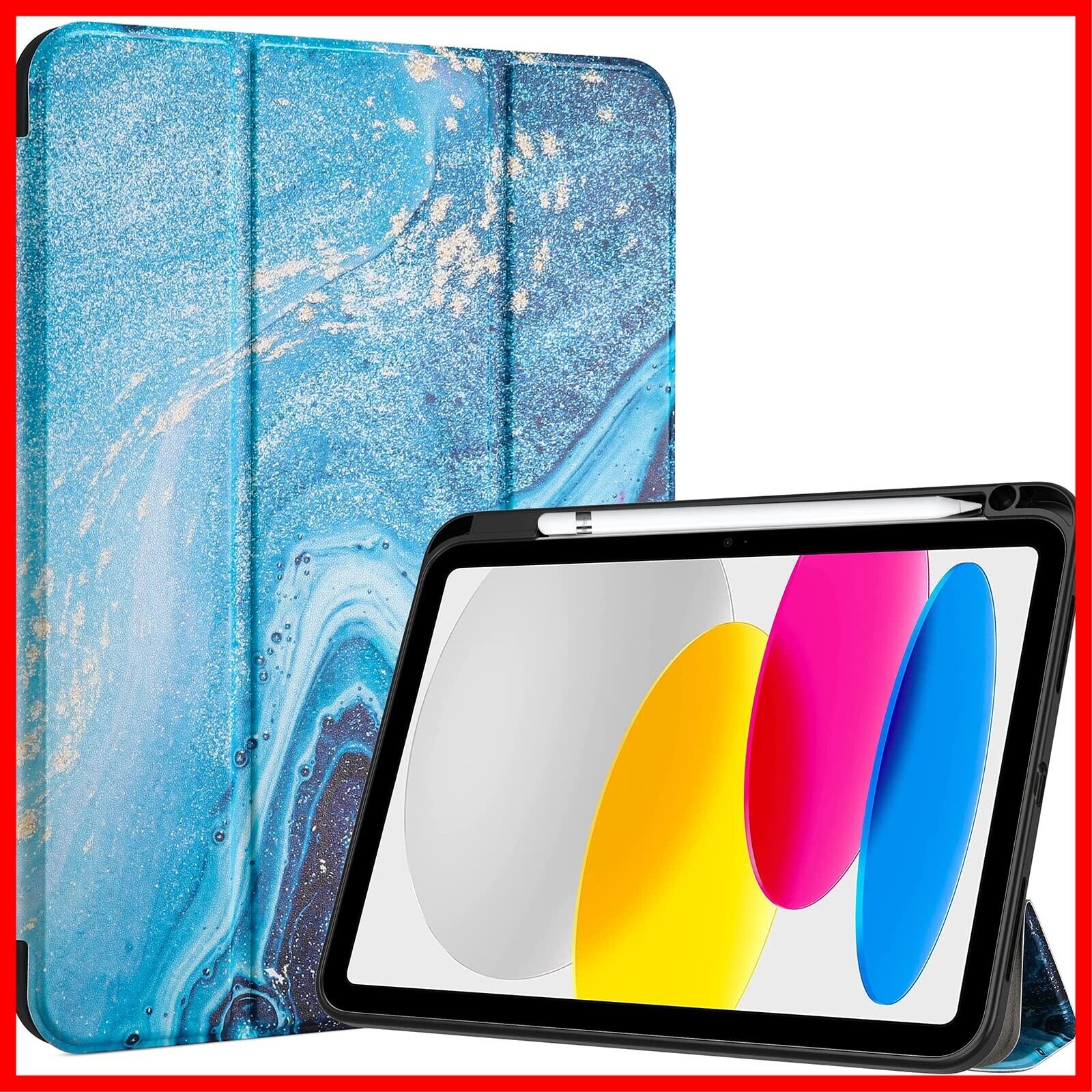 ProCase iPad 11世代/10世代 ケース iPad(A16)11インチ 2025/10.9インチ 2022通用 A2696 A2757 A2777 ペン収納 耐衝撃 三つ折り スタンド スマートカバー(オーシャンブルー)