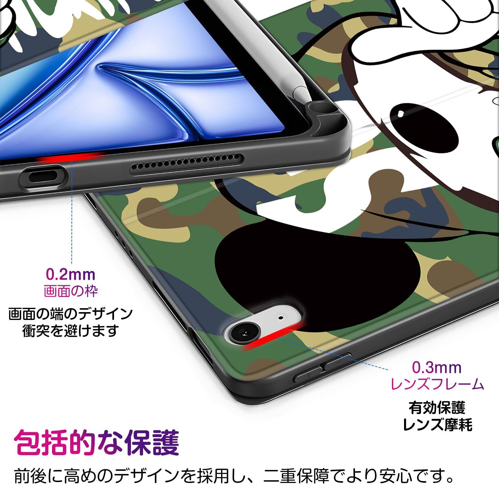 iPad Air 13インチ ケース M2 第6世代 2024専用 ペン収納 軽量 薄型 Pencil Pro/USB-C完全対応 オートスリープ/ウェイク機能対応 かわいい 人気オシャレ キャラクターシェル iPad Air 13インチ
