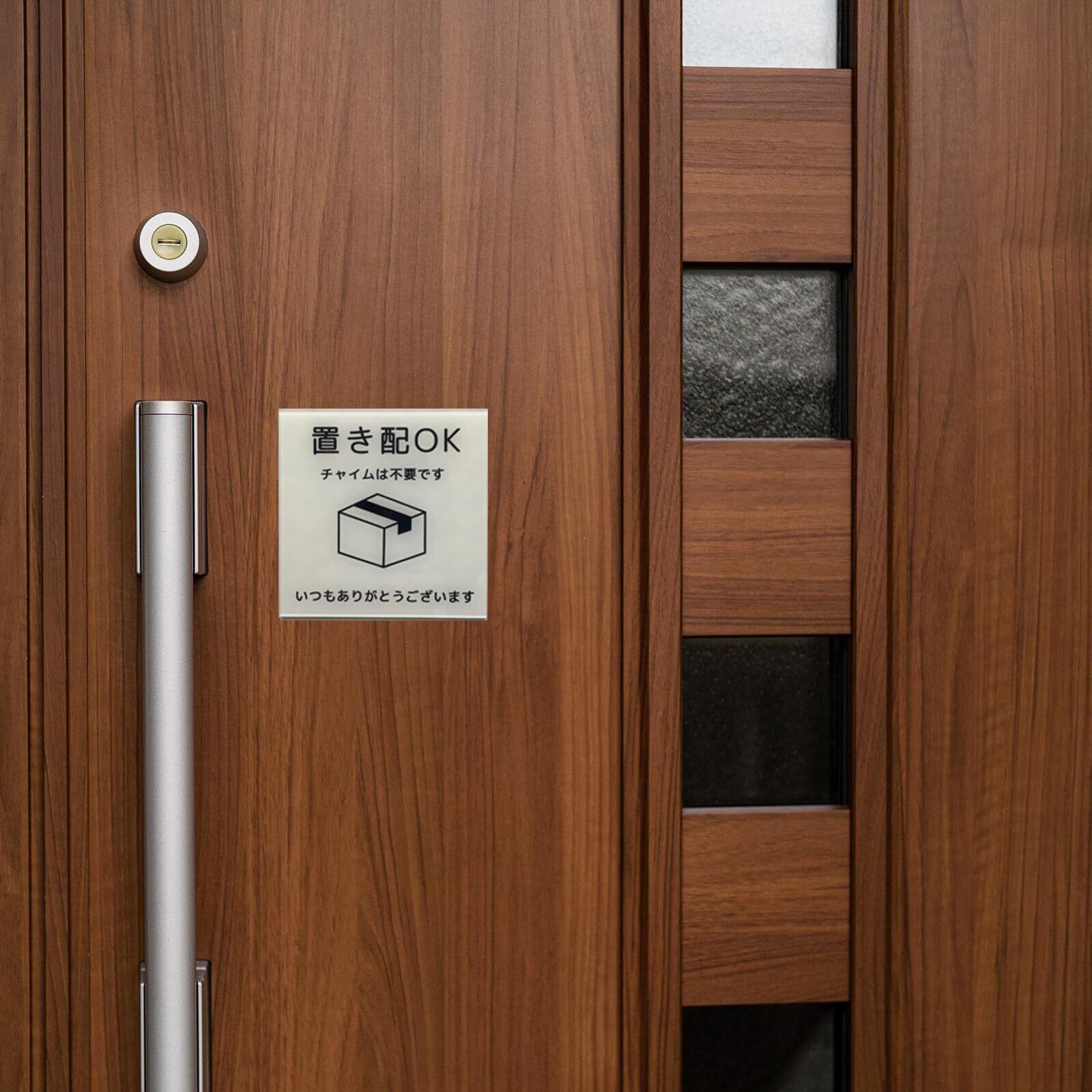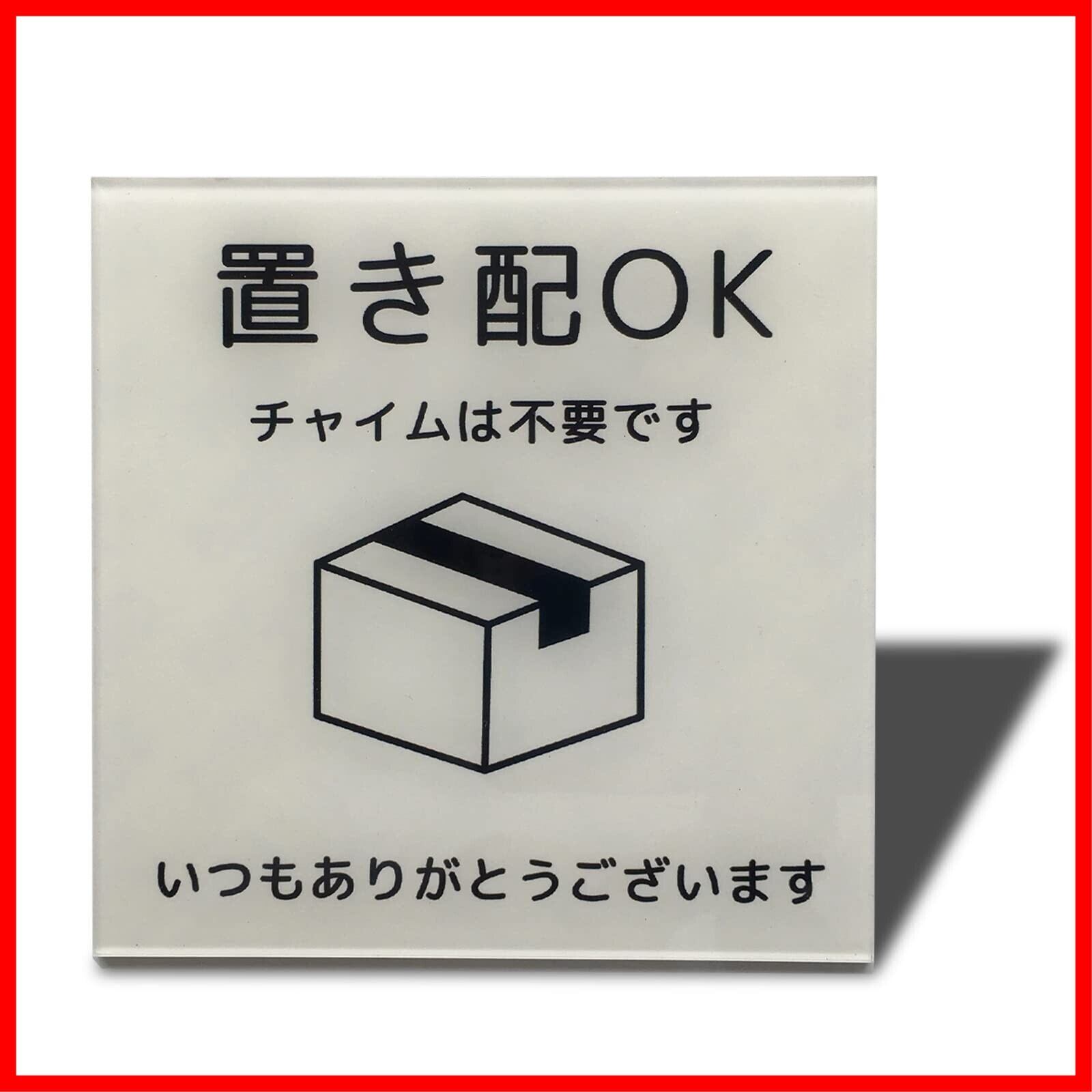 置き配OK 宅配ボックス 宅配BOX プレート 両面テープ付き 置き配達 不在案内 再配達防止 2㎜アクリル製 おしゃれ ステッカー (ホワイト80×80㎜(1枚))…