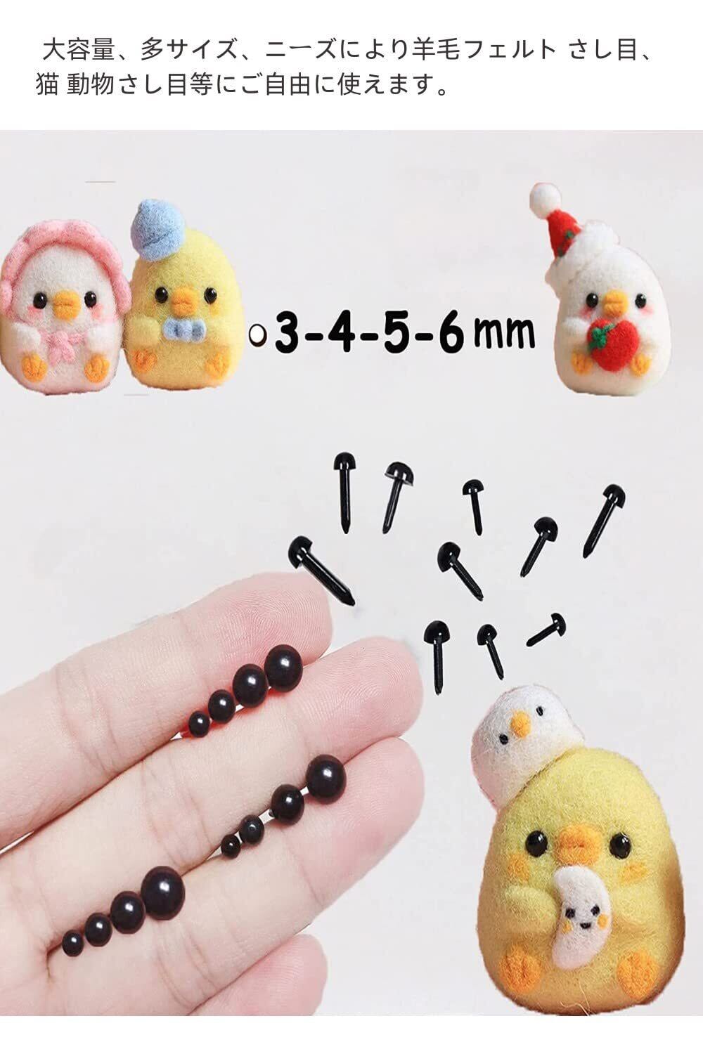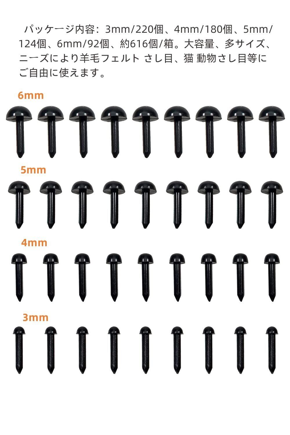 ✿【パッケージ内容】3mm/220個、4mm/180個、5mm/124個、6mm/92個、約616個/箱。大容量、多サイズ、ニーズにより羊毛フェルト さし目、猫 動物さし目等にご自由に使えます。※数量は重量で測定され、少し誤差がありましたら、ぜひご理解いただきます。