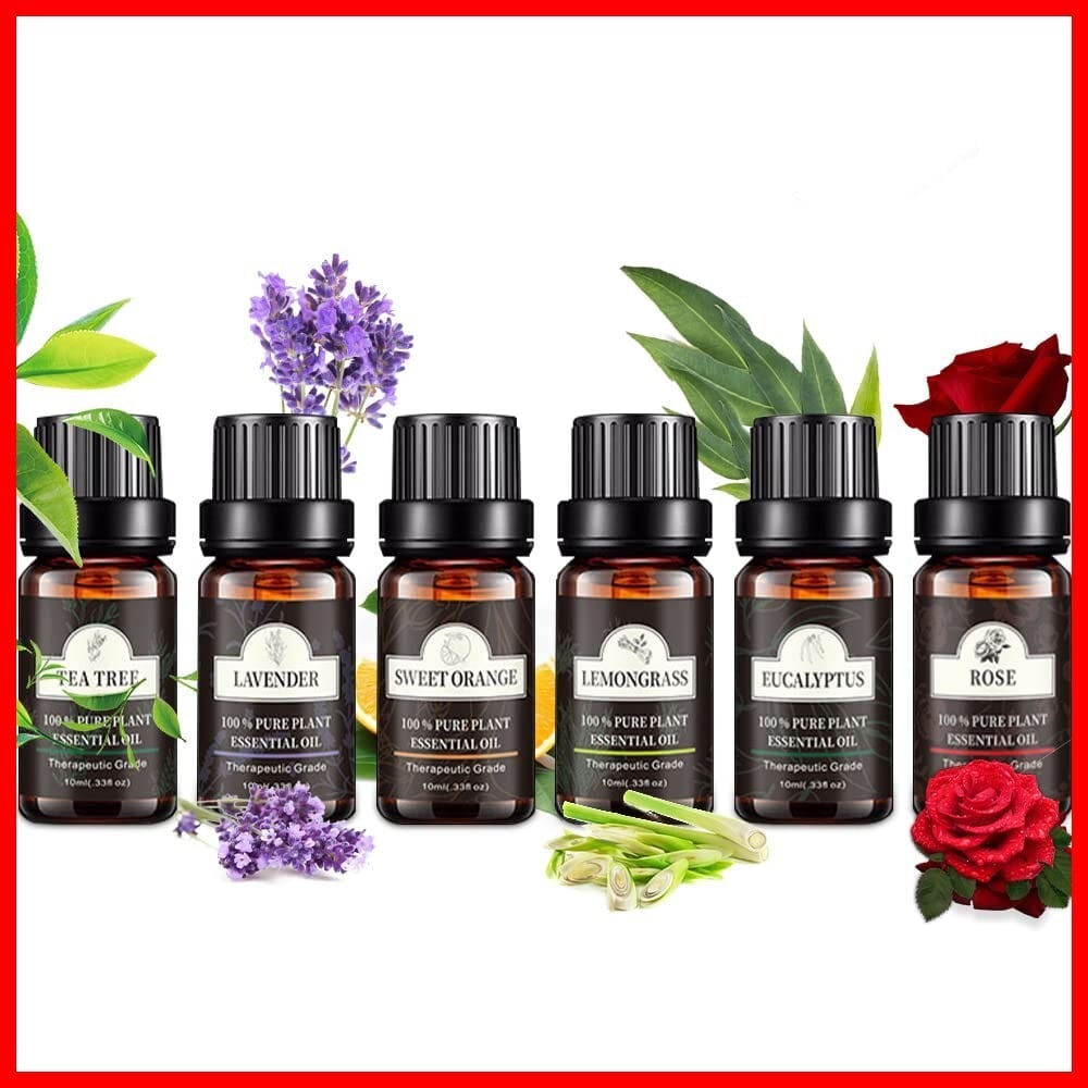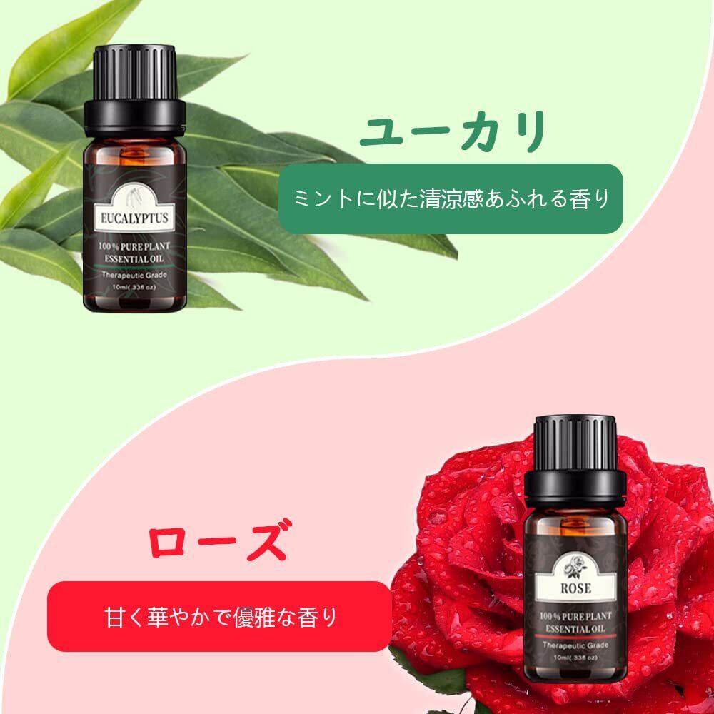 アロマオイル 6種セット エッセンシャルオイル 天然100% 精油 ラベンダー/レモングラス/スイートオレンジ/ローズ/ユーカリ/ティートゥリー 10ml × 6本