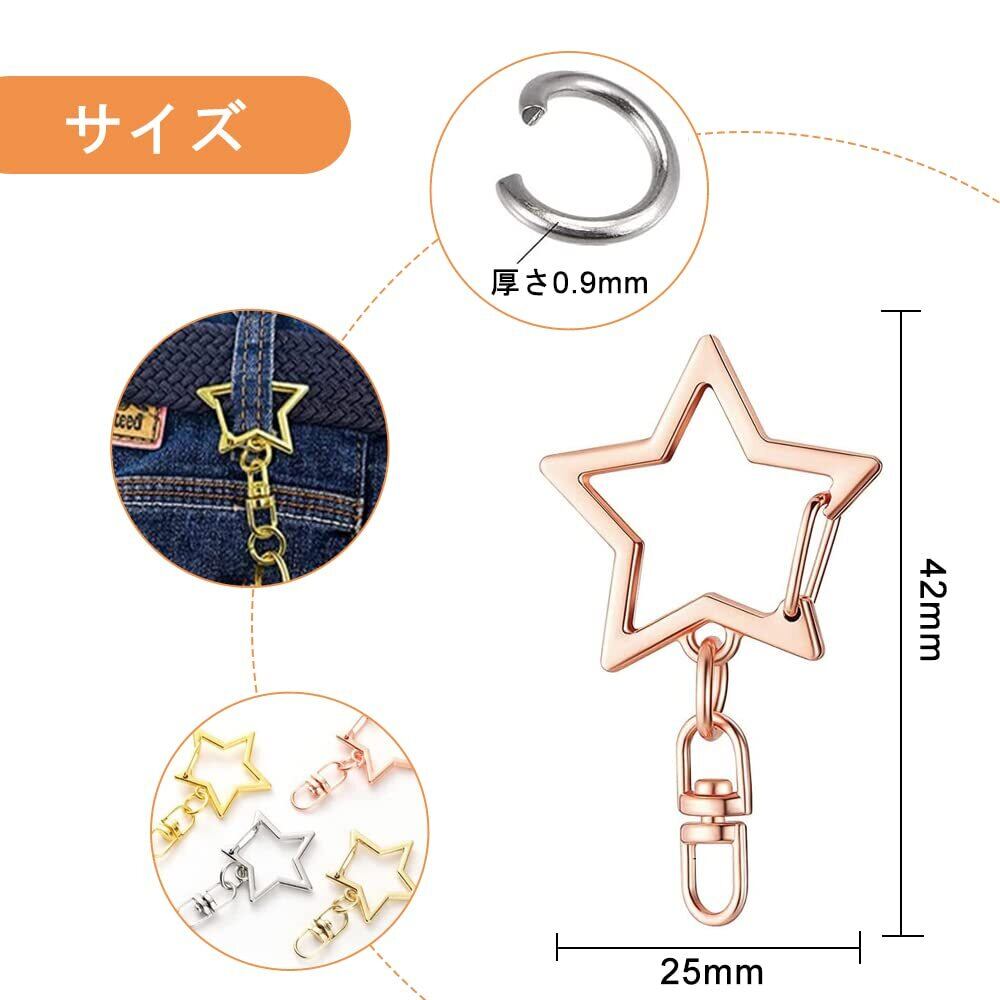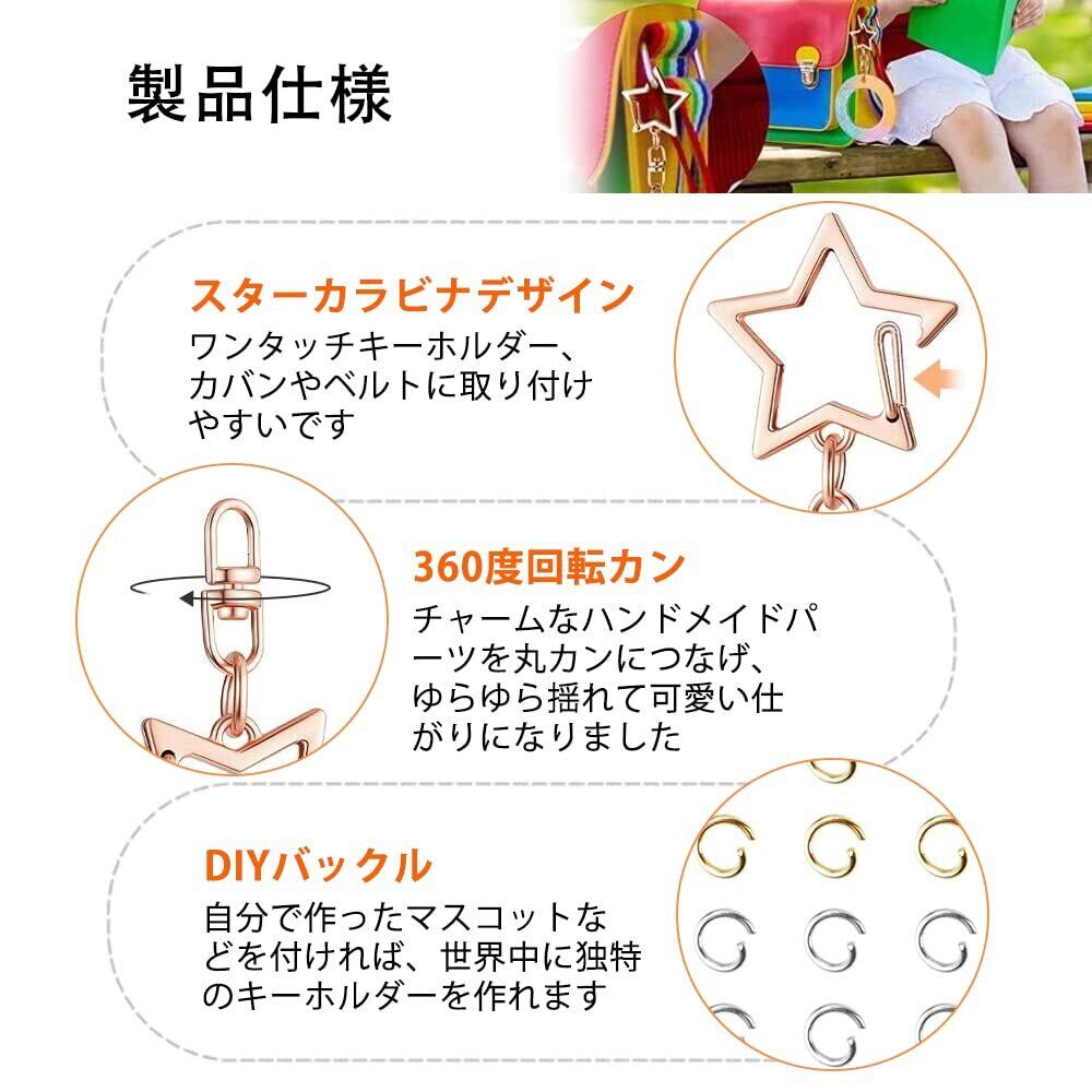 星 ナスカン キーホルダー金具 24個セット 回転カン付き 丸カン付き ワンタッチキーホルダー カワイイ DIY用パーツ 手作り 手芸用品 ハンドメイド キーリング アクセサリー 全長42mm(4色) | hananoki