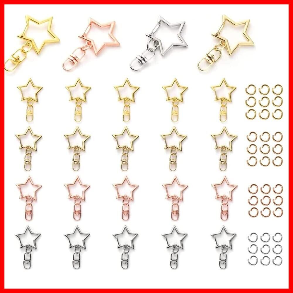 星 ナスカン キーホルダー金具 24個セット 回転カン付き 丸カン付き ワンタッチキーホルダー カワイイ DIY用パーツ 手作り 手芸用品 ハンドメイド キーリング アクセサリー 全長42mm(4色)
