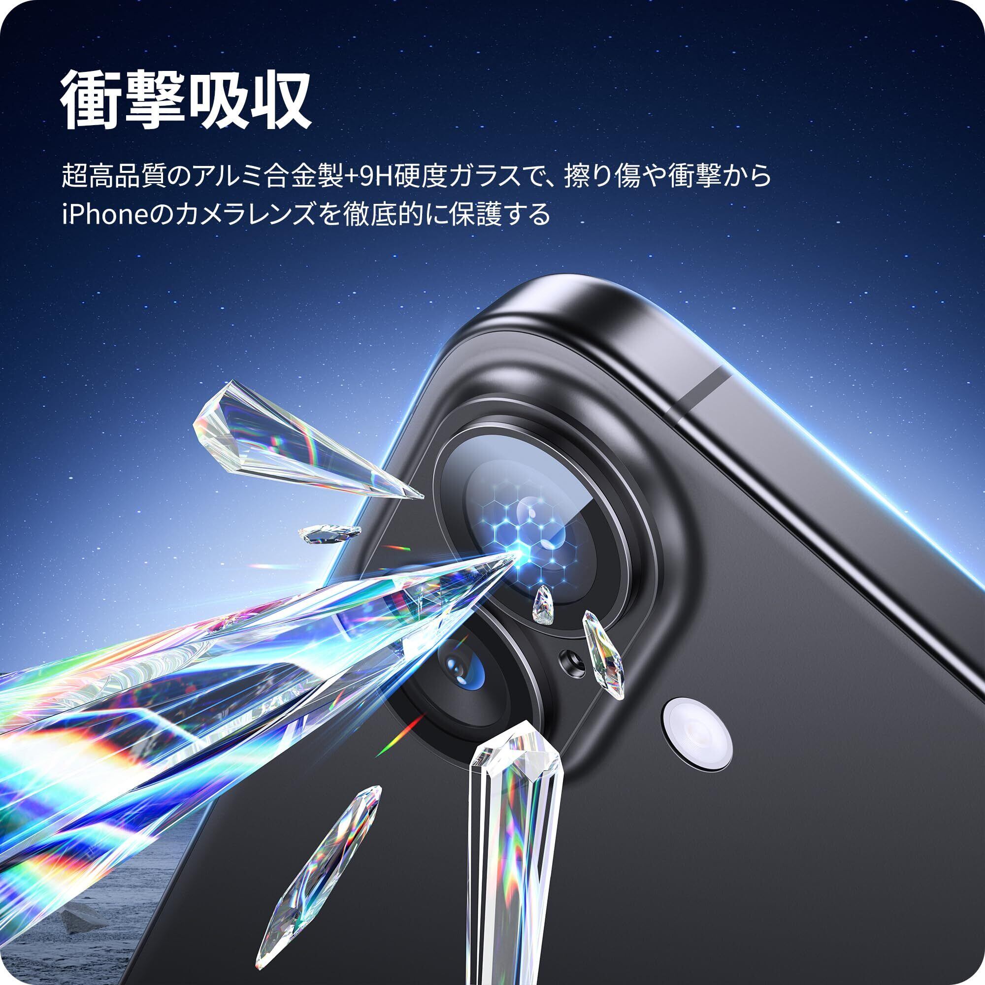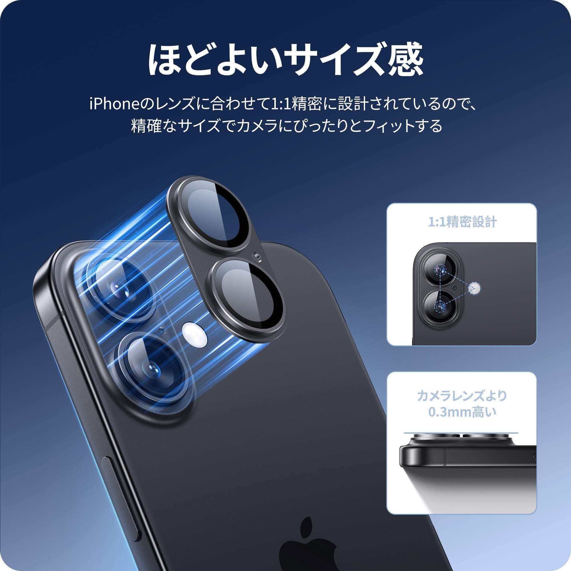 NIMASO カメラカバー iPhone 16/iPhone 16 Plus 用 カメラ保護 フィルム アルミ合金+9H強化ガラス 全面保護 耐衝撃 レンズ保護 黒縁取り アイフォン16/16プラス 対応 2枚セット DCM24G1436 | hananoki