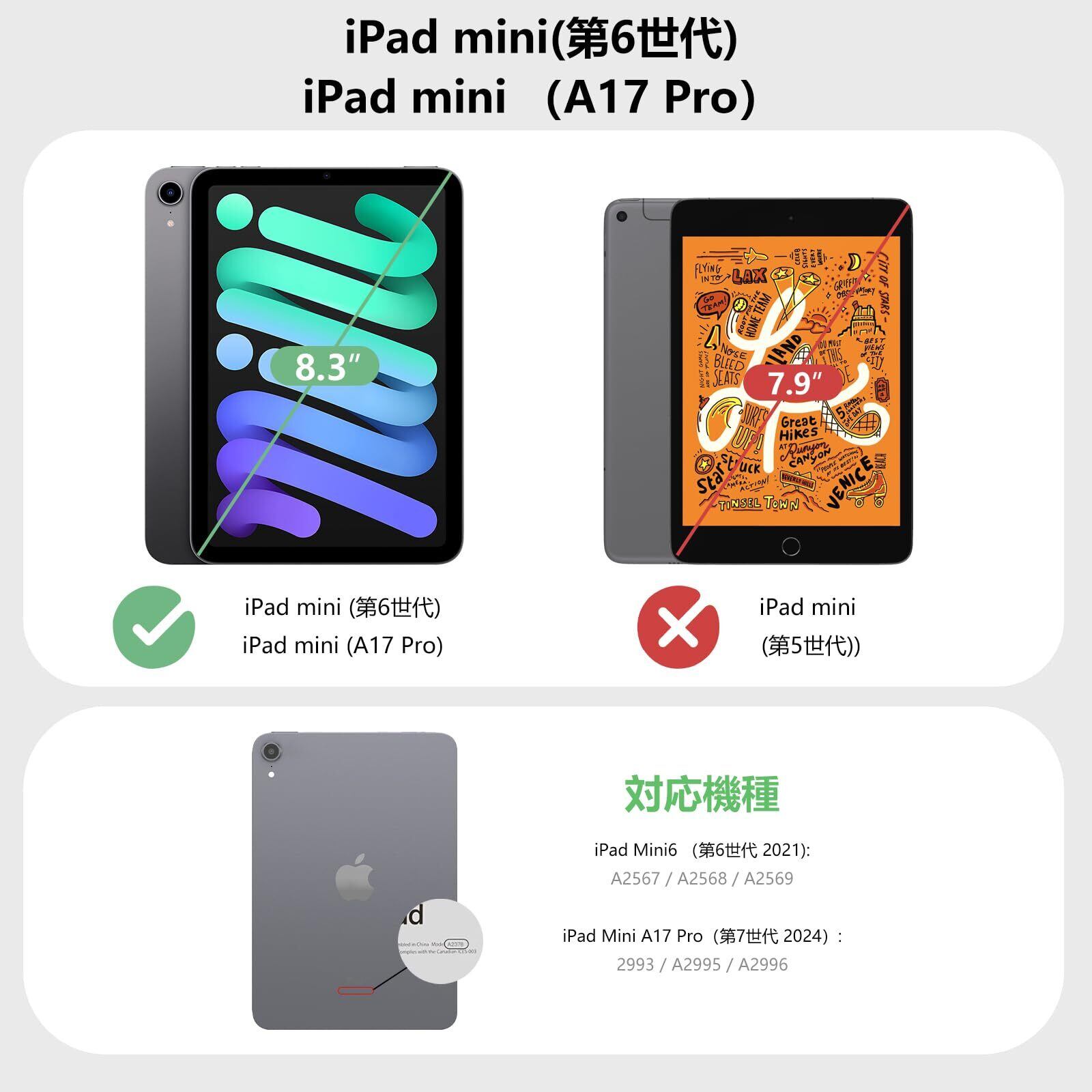 【対応機種】:iPad Mini A17 Pro 第7世代 2024 モデル番号:A2993 / A2995 / A2996、iPad Mini 6 2021発売 8.3インチ モデル番号:A2567 / A2568 / A2569。ご購入前に、機種・モデル番号をご確認ください。ご注意:モデル番号の確認は端末本体の背面カバーにチェックしてください。