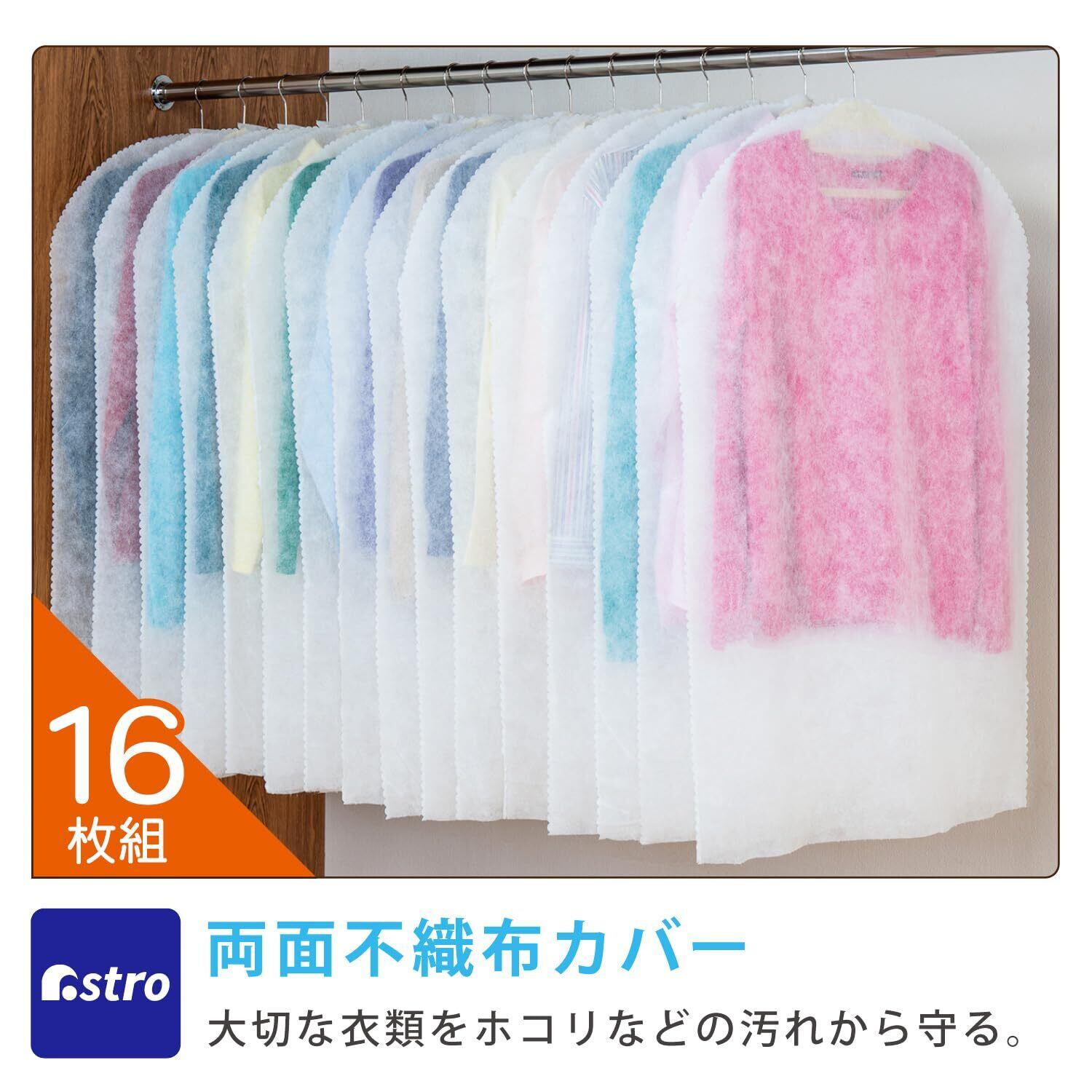 アストロ 衣類カバー ホワイト ショートサイズ 16枚組 洋服カバー スーツカバー 通気性の良い不織布 埃除け ジャケット スーツ 冠婚葬祭 保管 カット可能 605-01