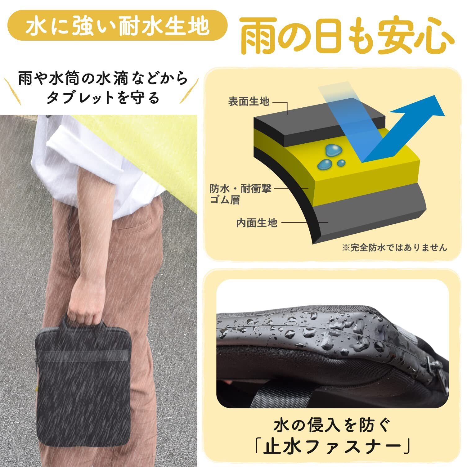 ・傷や衝撃、雨に強いウェットスーツ生地を使用。伸縮性に優れておりタブレットをしっかり保護する。