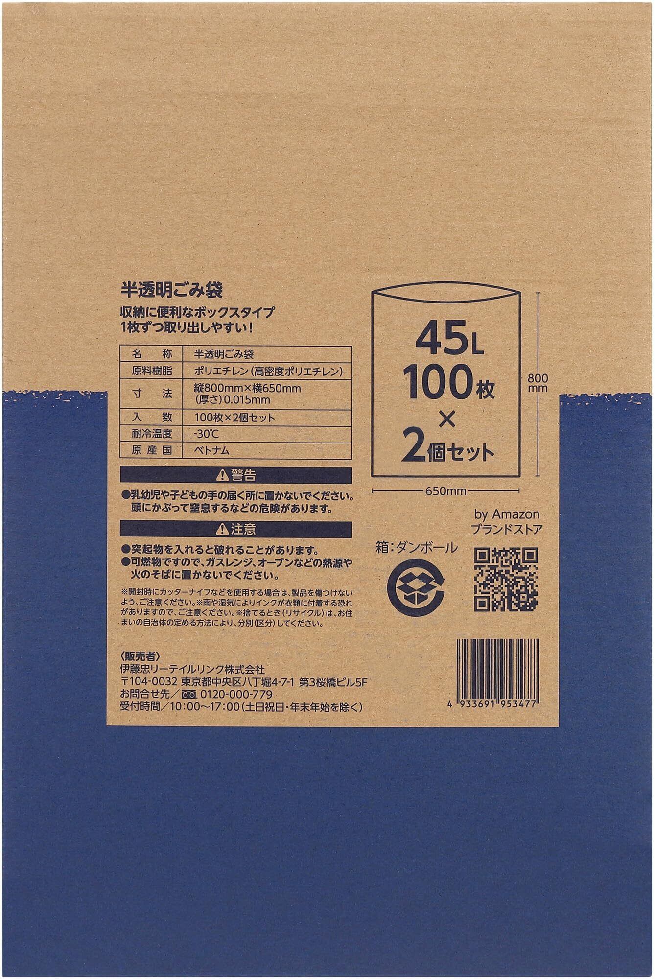 by ごみ袋 半透明 シャカシャカタイプ 45L 200枚(100枚×2箱)