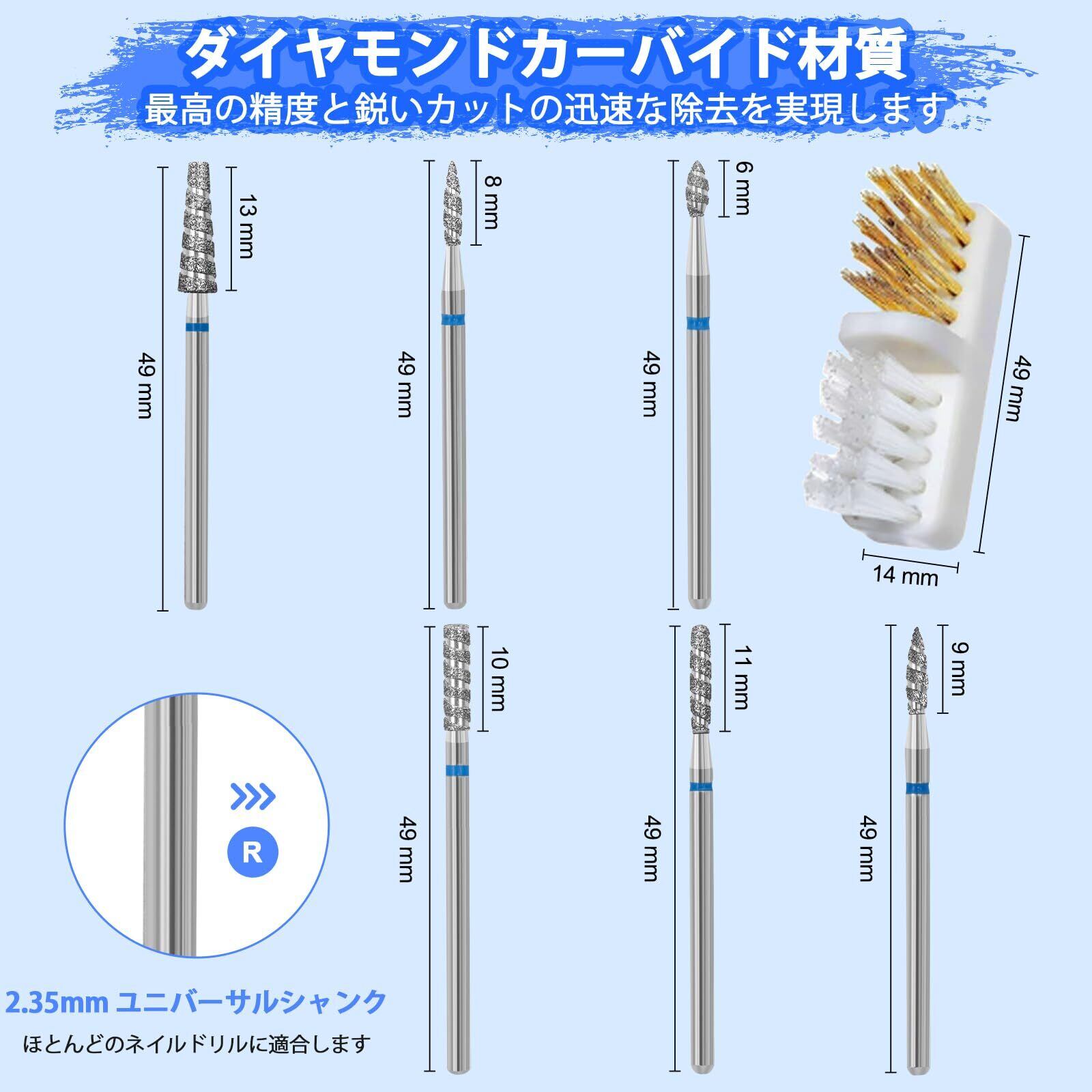 Diesisaネイルビット 6個 ネイルマシン ビット 2.35 mm 軸径ダイヤモンド ネイルビット オフ 電動ネイルドリルビット ネ 甘皮処理 角質除去 ネイルケア用 マニキュアホームサロン用(中目) | hananoki