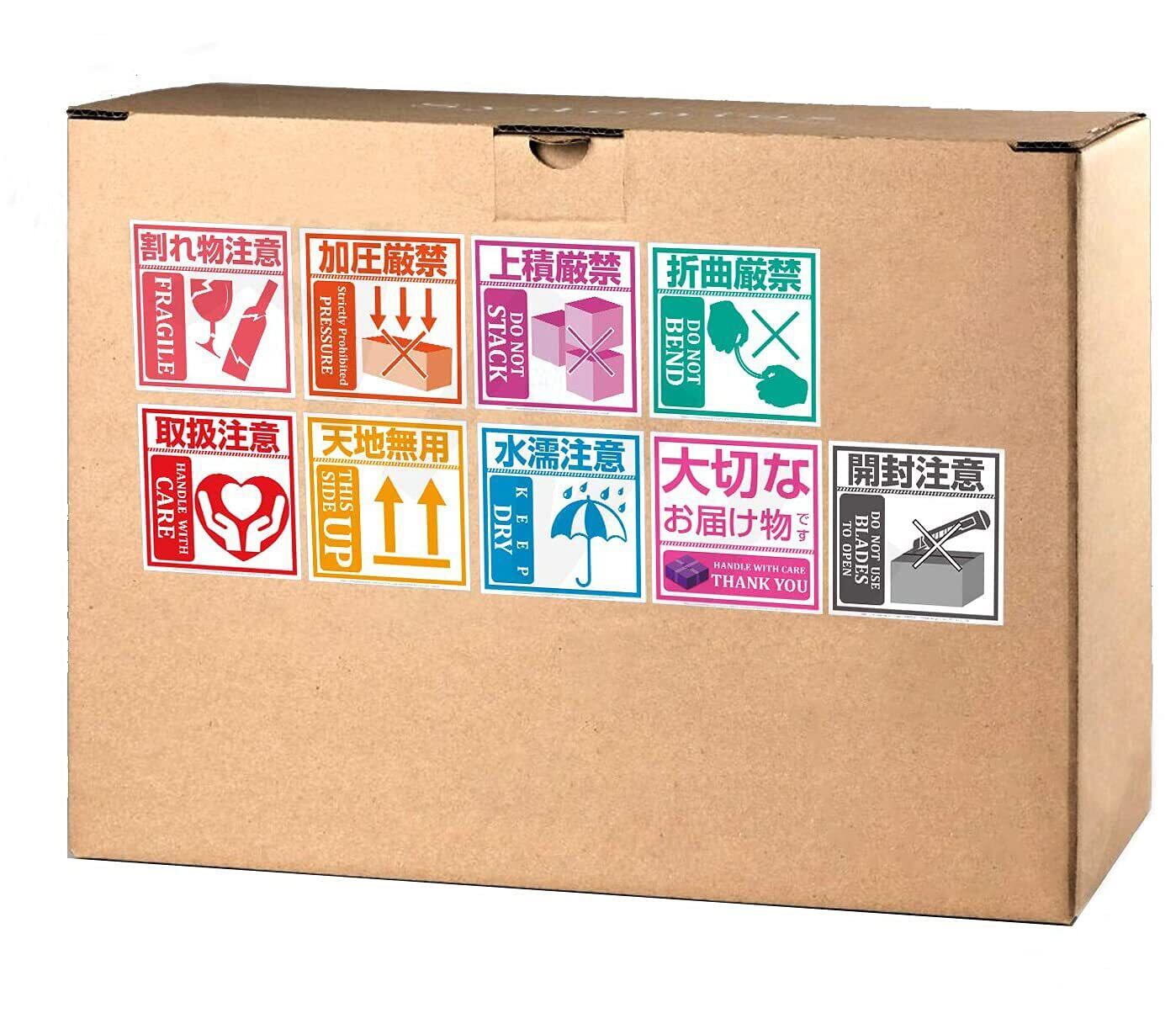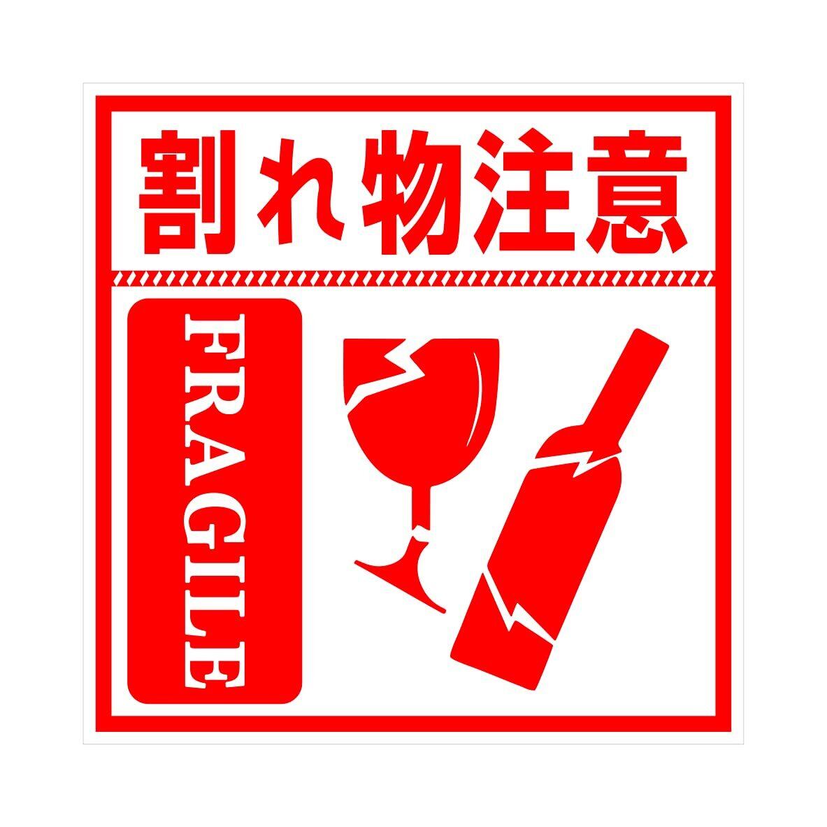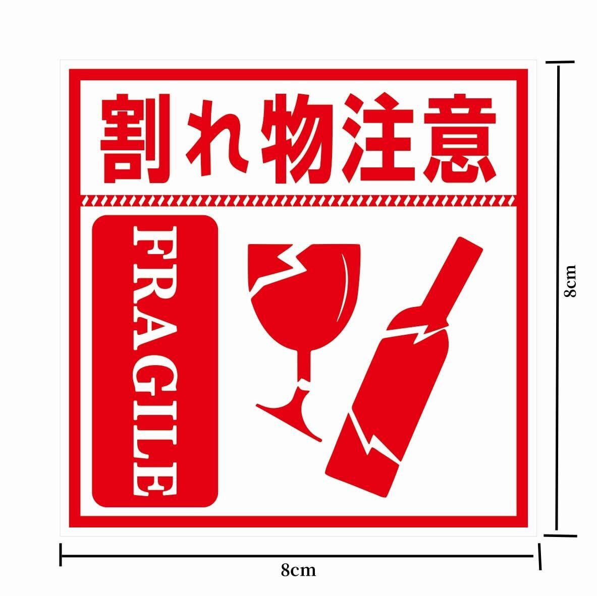 商品詳細:ワレモノ注意 シール、紙1枚サイズ:8 cm×8センチ、数量:100枚。