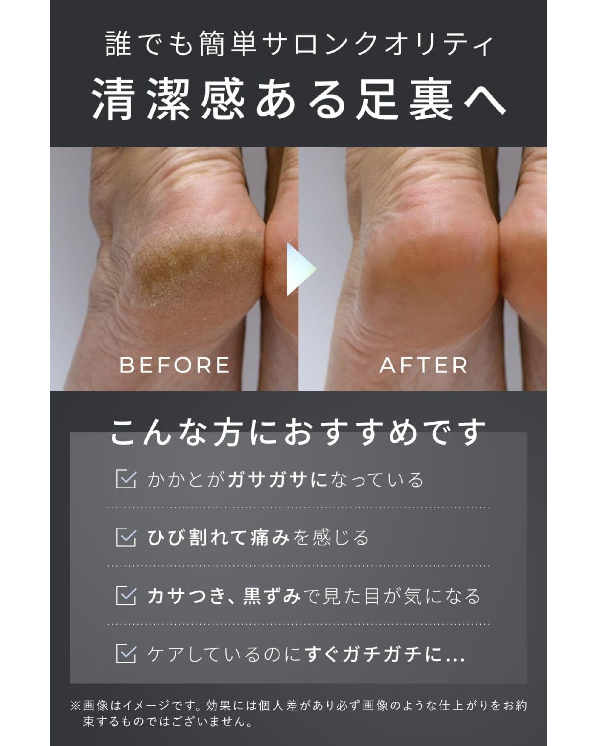 【かかとの悩みを一掃解決します】️ガサガサカチコチ踵もつるつるに️角質が溜まる事でニオイや不衛生の原因に️一部の角質が分厚くなることによる痛み解消️後ろ姿のガサガサかかとに️等々踵の不安に先回り、足元から清潔に美しく️ご使用後は保湿クリームを塗るとより効果的です。