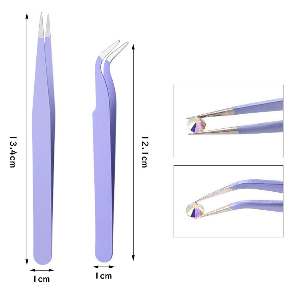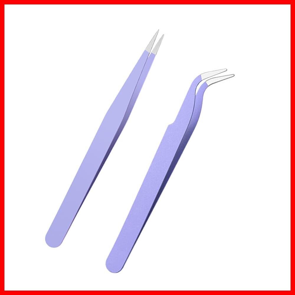 サムコス まつエク ピンセット つけまつげ まつ毛 ピンセット ピンク ストレート ステンレス つけまつ毛 睫毛 細かい 作業 2種類セット (パープル)