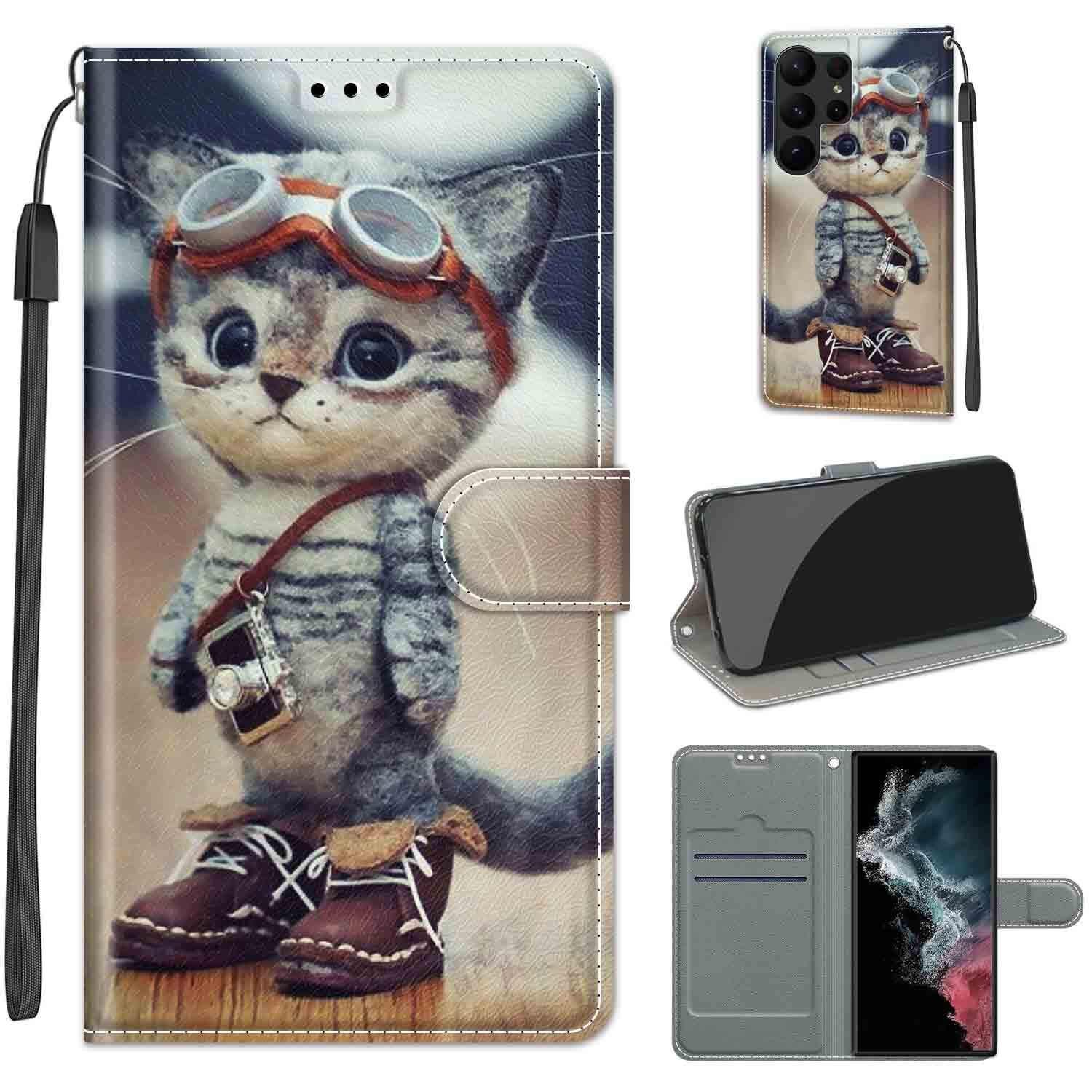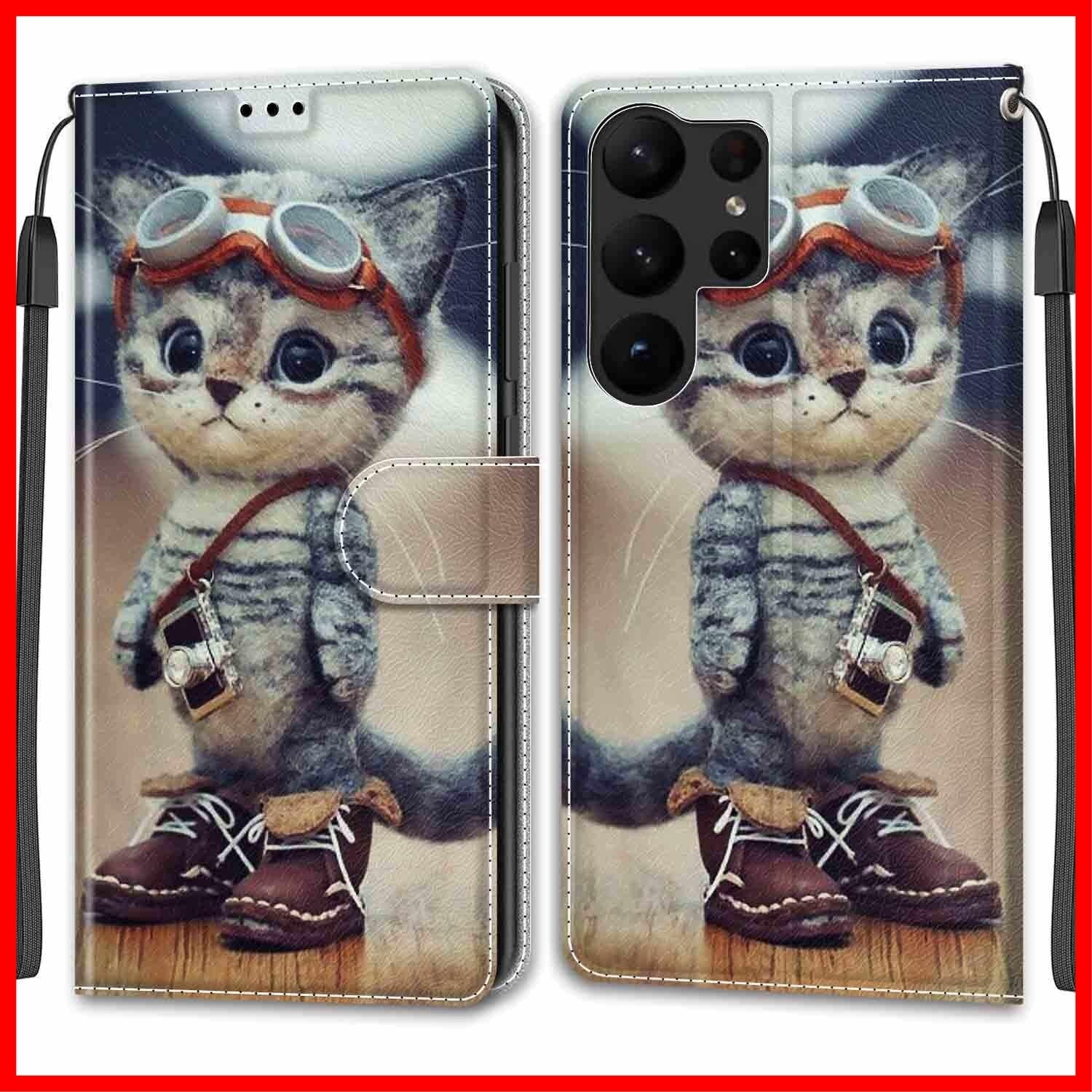 Galaxy S23 Ultra ケース 手帳型 対応 Samsung ギャラクシー S23 ウルトラ/SC-52D / SCG20 用 カバー スマホケース 財布型 カード収納 レザー TPU 耐衝撃 携帯カバー 横置き機能 マグネット式 おしゃれ (スーツ猫)
