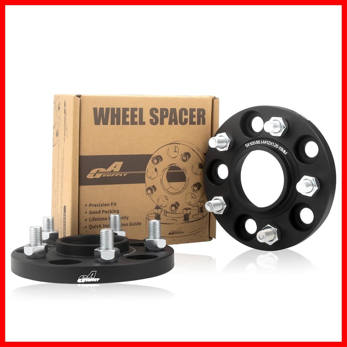 GAsupply 鍛造ワイドトレッドスペーサー PCD100 5H 内径56.1 M12XP1.25 厚さ15mm ワイトレハブリング一体 マットブラック【2枚セット】