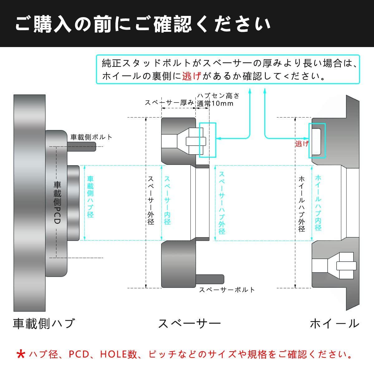 【ボルト&ナット】本製品のボルトとナットには、強度の弱い亜鉛ボルトを使用せずに、高強度のカ一ボンスチ一ル鋼を採用。高い強度で車の足元を支えます。※ナットは専用設計の為、スぺ一サ一の厚みによってナットの長さも異なります。