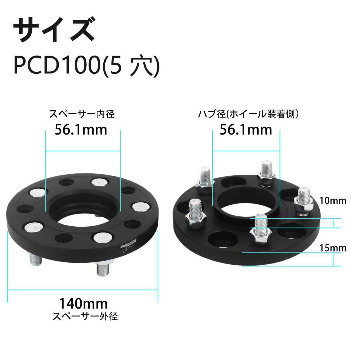 【サイズ】5穴 PCD100 内径:56.1mm ボルト:m12x1.25 ご購入前にご確認ください!!!