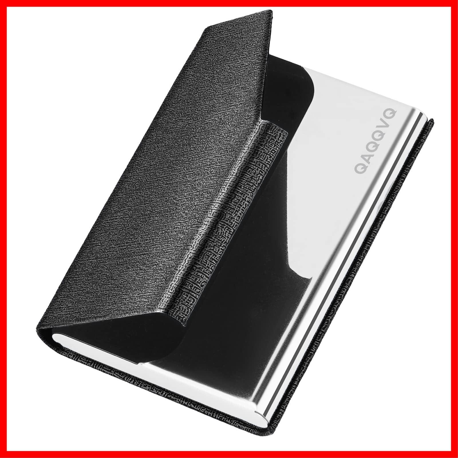 [QAQQVQ] 名刺入れ カードケース【取り出しやすい】 ステンレス鋼 名刺が折れない25枚 薄型 PUレザー マグネット式 1秒開閉 化粧箱付き ビジネス メンズ レディース 男女兼用 (Black)