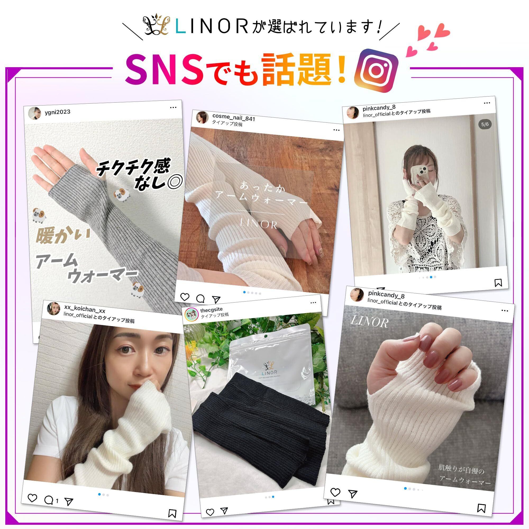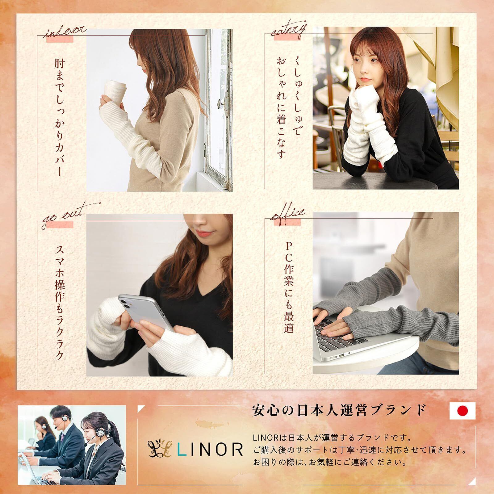 LINOR アームウォーマー アームカバー 手首ウォーマー レディース 冬 ロング 親指穴付き カシミヤ混 さらさら 極暖