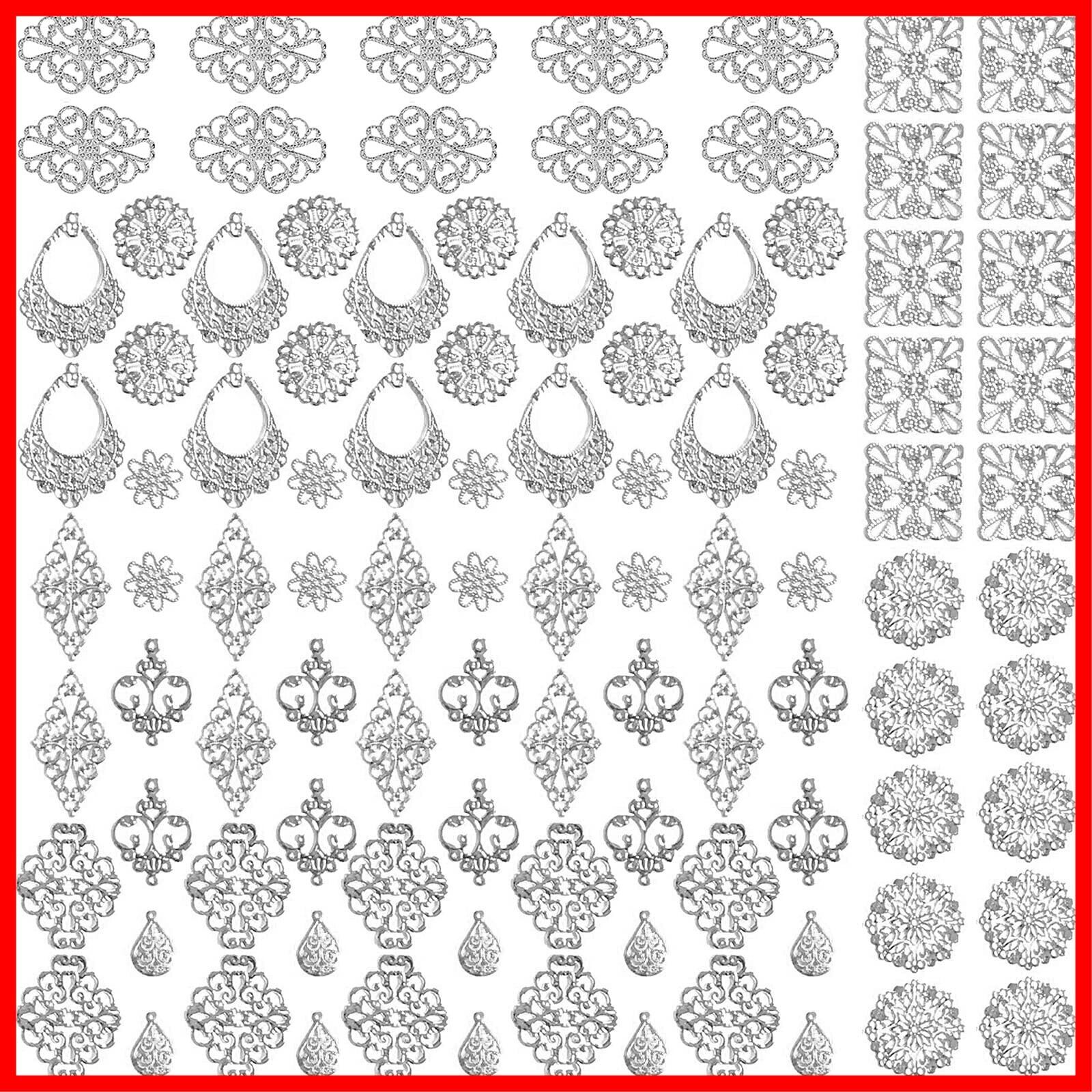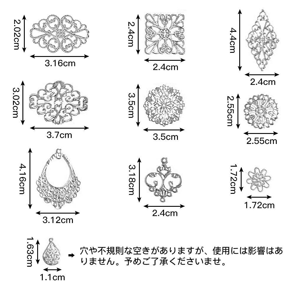 サムコス 約100個セット 透かし パーツ シルバー 四角 三角 花 月 雫 DIY ハンドメイド アクセサリー 金具 素材 ピアス イヤリング かんざし ビジュー 台座