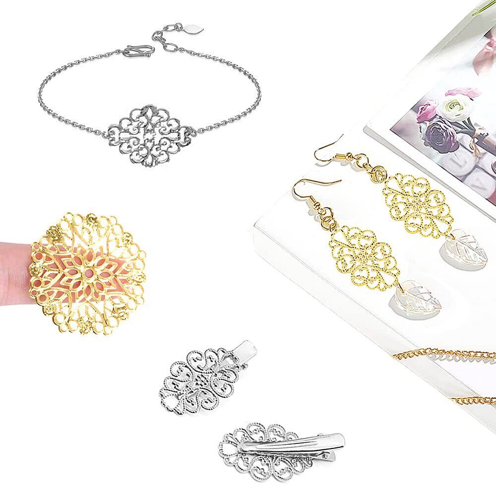 便利:透かしパーツは薄いプレート状の金属に穴が空いている形状なので、透かし模様の空いている部分にそのまま紐や金具でビーズやチャームなどを繋いで使うことが出来ます。