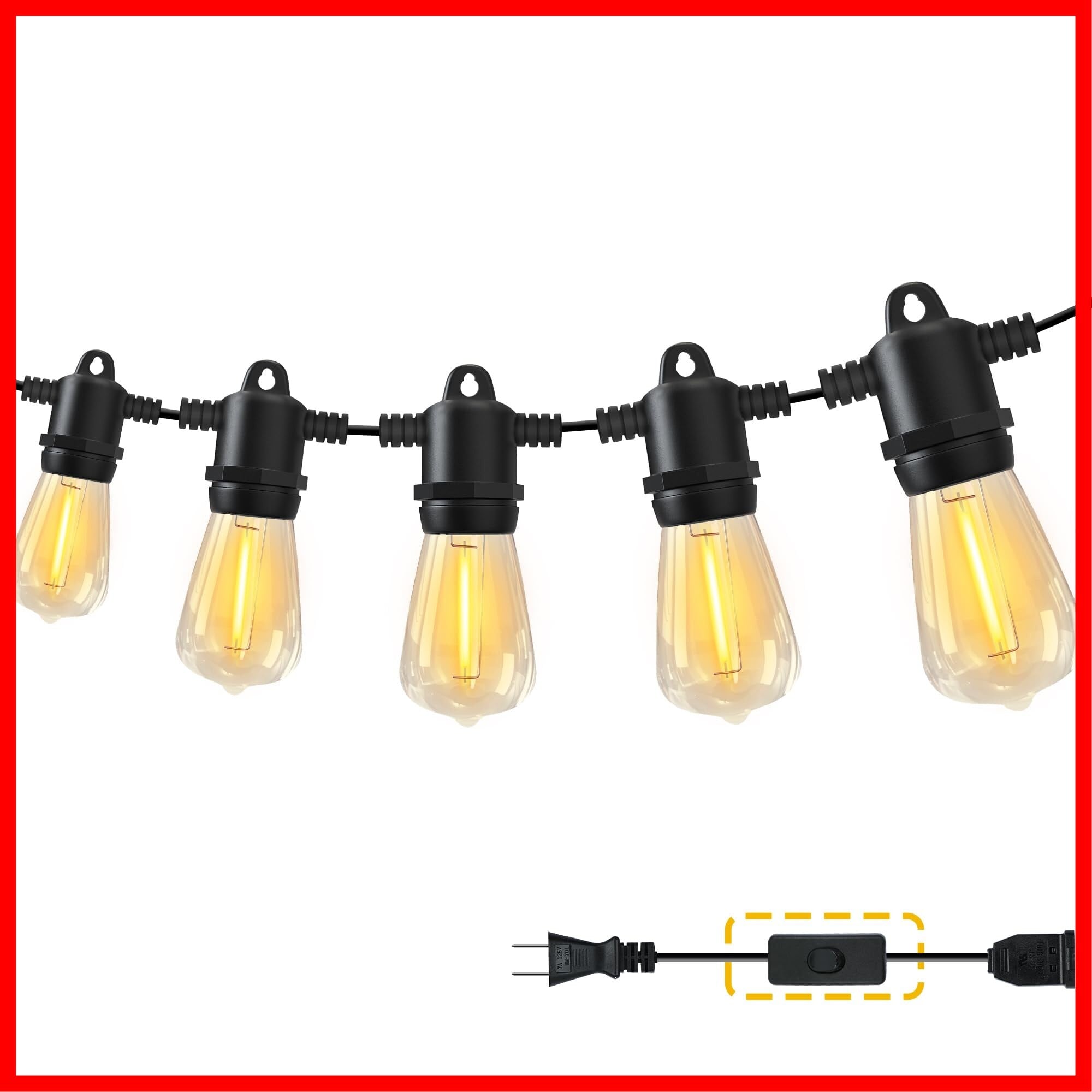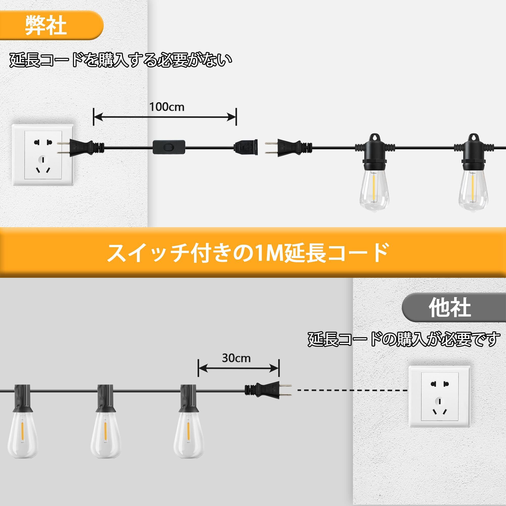 LEDストリングライト 屋外 防雨型 延長コード スイッチ付き 11.8m 13個電球 E12口金 PC素材 破損しにくい 電球色 連結可能 屋内 屋外照明 キャンプライト ガーデンライト 誕生日 ハロウィン 結婚式 クリスマス パーティー電飾 庭 商店街