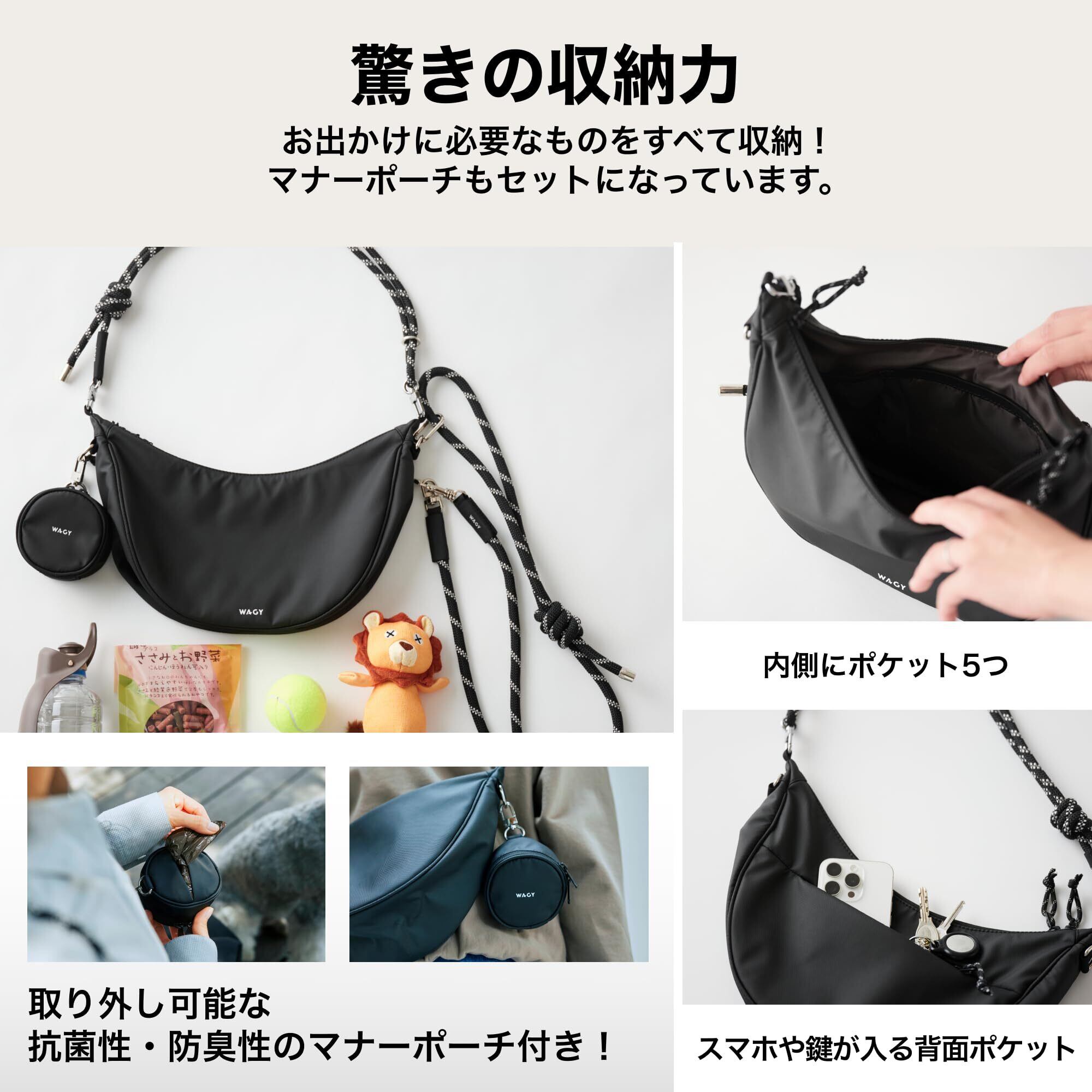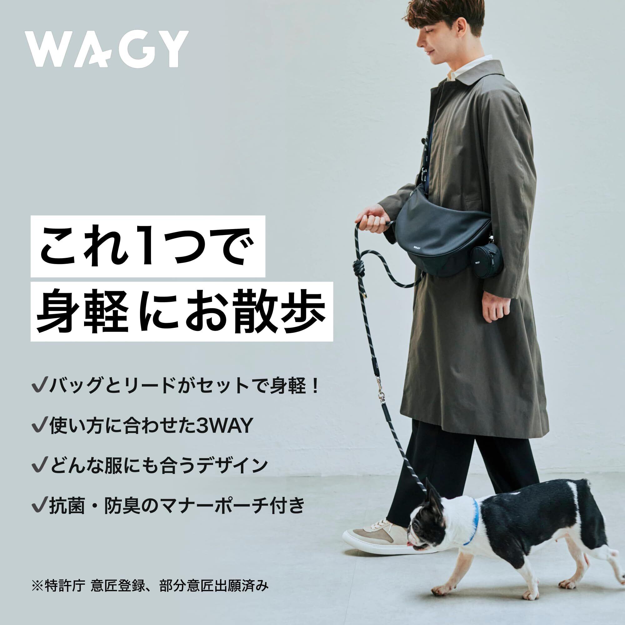 【WAGY】 お散歩バッグ付きリード 犬用リード お散歩リード ショルダーリード 2WAYリード 多機能リード 取り外し可能リード お散歩バッグ バッグ付きリード 肩がけリード バッグ一体型リード おしゃれリード おしゃれバッグ 愛犬用リード 便利グッズ お散歩グッズ おしゃれ デザイン賞