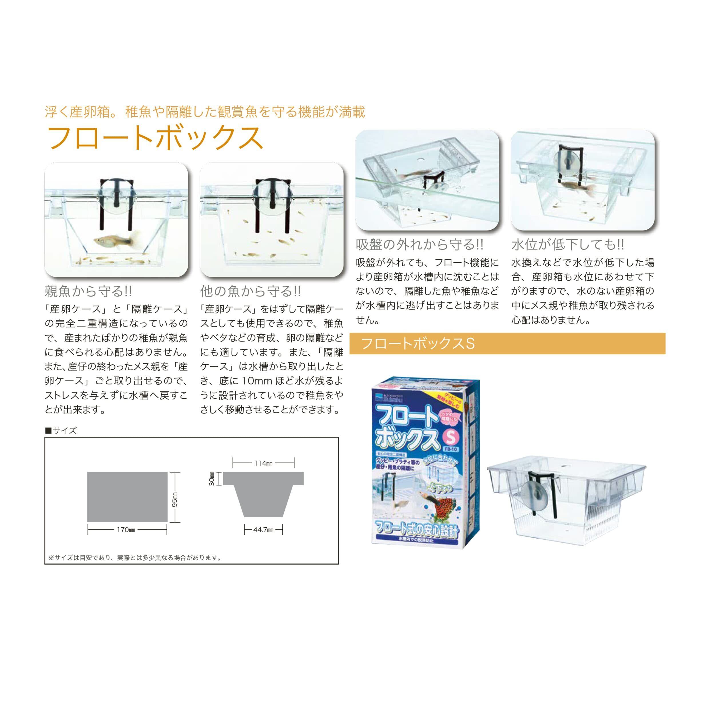 もしも吸盤が外れても、フロート機能により産卵箱が水槽内に沈むことはないので、隔離した魚や稚魚などが水槽内に逃げ出すことはありません。
