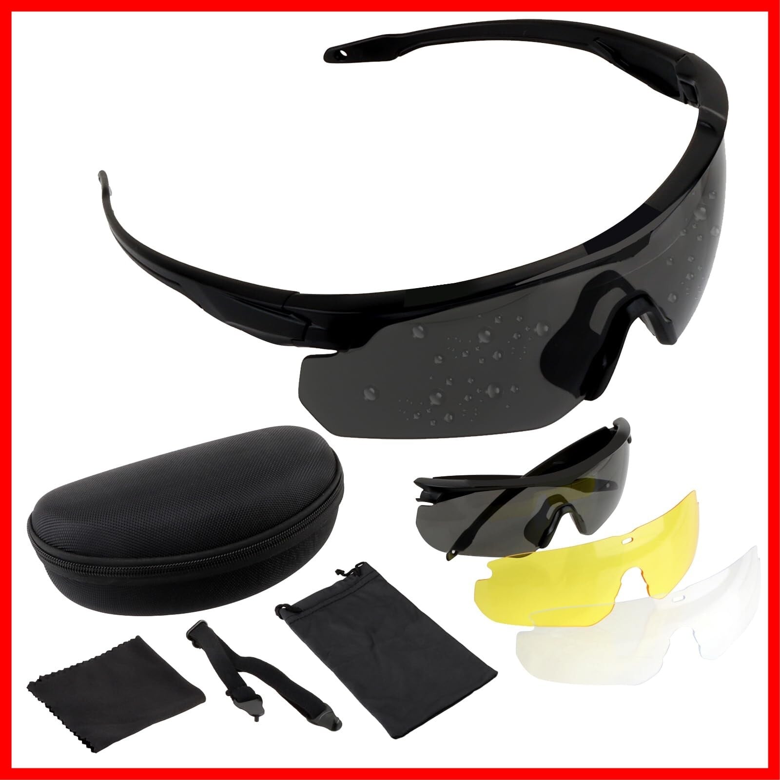 [FOCUHUNTER] タクティカルゴーグルグラス 耐衝撃スポーツグラス ゴーグル シューティンググラス サングラス 切替レンズ3枚 防曇UV400カット ハードケースセット 男女兼用 釣り、バイク、スポーツ用