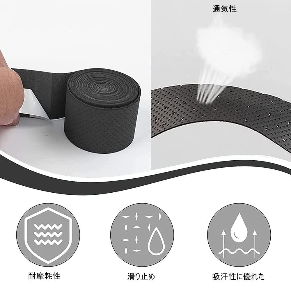 【滑り止め】グリップの表面は凹凸型で、衝撃を軽減します。汗を効果的に吸収できる小さな穴がたくさんあるグリップテープ、滑り止めとしても機能します。