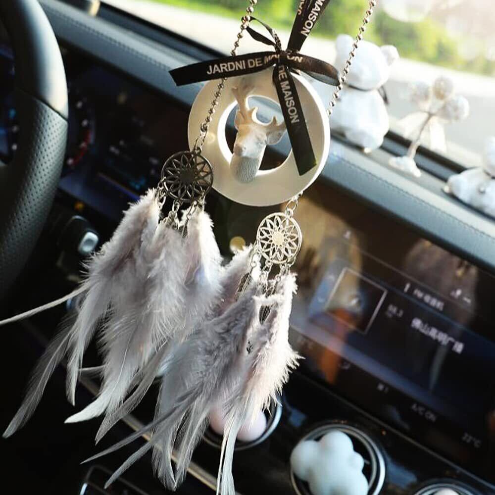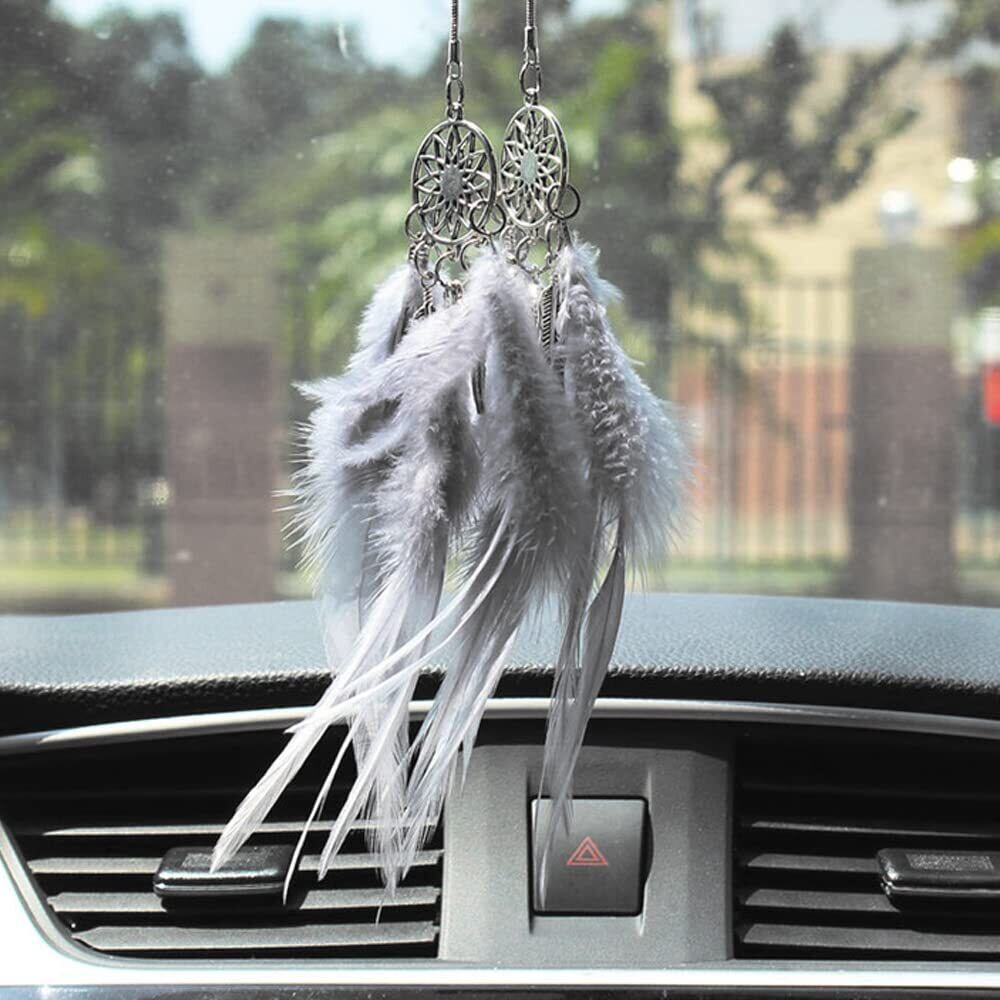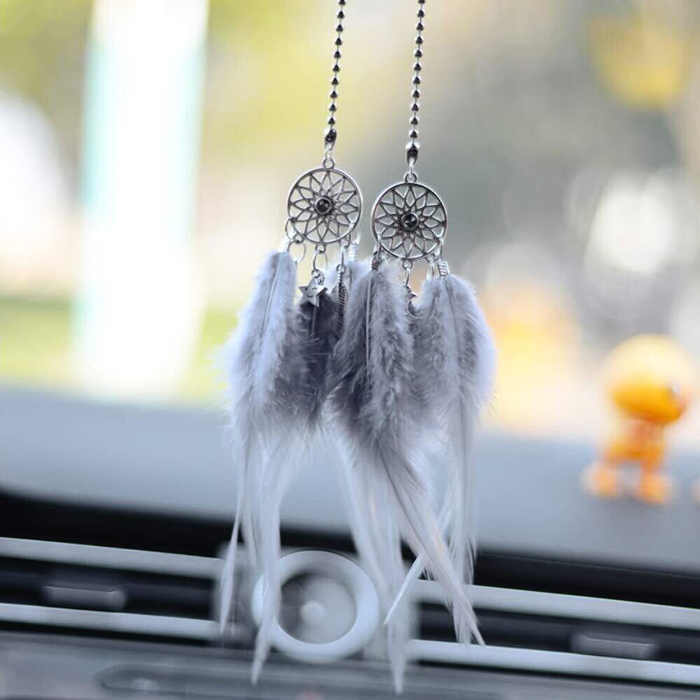 サムコス ドリームキャッチャー カーアクセサリー ペンダント 捕夢網 車飾り インテリア 窓飾り おしゃれ 精緻 乙女心 かわいい プレゼント 人気 ラッキー 祝福 幸せ守る 小型で静か運転を邪魔しない (グレー) | hananoki