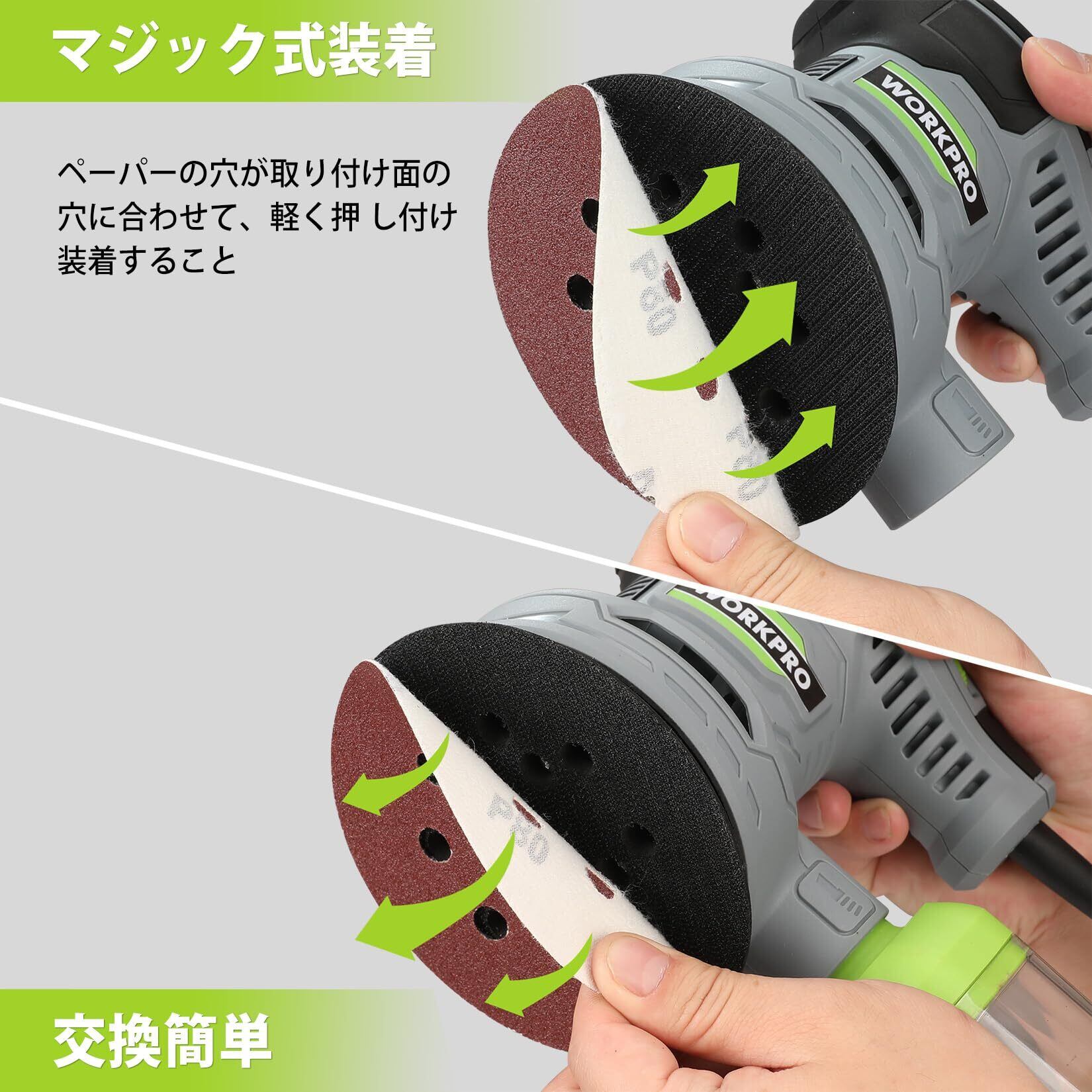 WORKPRO サンダー 電動サンダー ランダムサンダー 300W 13000RPM 6段階調速 高集塵システム マジックテープ式 サンドペーパー20枚 仕上げサンダー DIY日曜大工 木工作業 研磨 仕上げ 荒削り 日本語取扱説明書 PSE認証