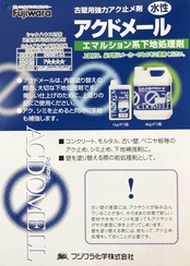 アクドメールは、特殊な骨材が混入された強力アク止め剤です。塗布面がざら目に仕上がり、上塗りが簡単。アク、シミを止めると同時に下地も補強します。