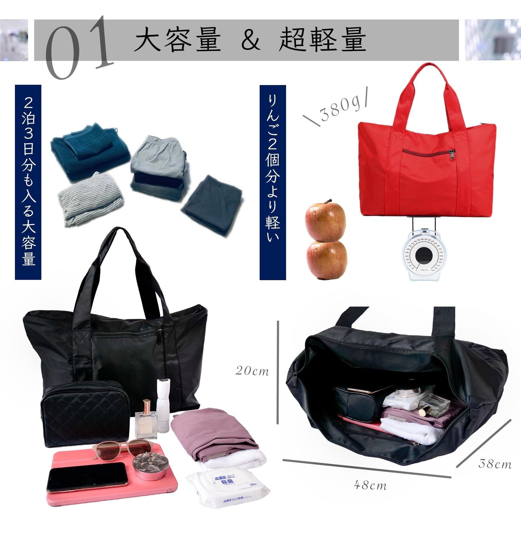 【サイズ】横幅: 48cm 、 高さ: 38cm 、 マチ: 20cm 、手提げ: 17cm 【重量】: 380g 大容量で軽くて持ち運びやすい物となっています。空の状態では自立しません。