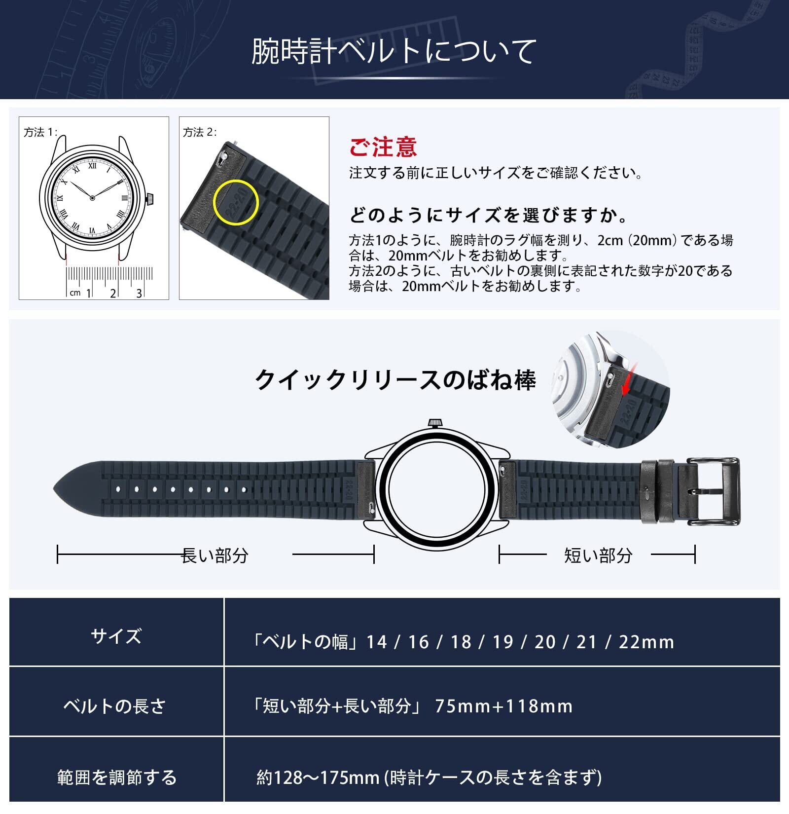 [BINLUN] レザー 時計バンド 内側のラバー 通気性 ハイブリッド クイックリリースウォッチベルト 腕時計ベルト スマートウォッチベルト 男女通用 (ブラック,22mm,ブラックバックル) | hananoki
