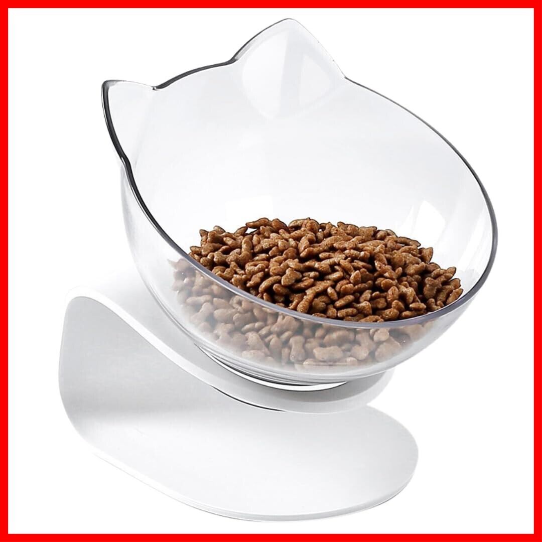 I'm so happy 猫 餌入れ 透明 餌台 皿 食べやすい 斜め ごはん台 水飲み皿 吐き戻し軽減 食器 (1個)