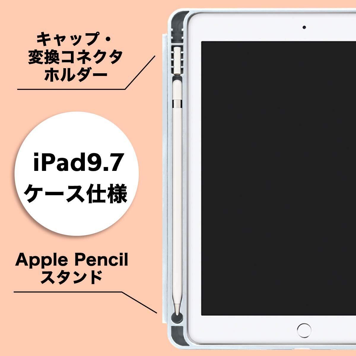 MS factory iPad 9.7 用 ケース 2018 2017 アイパッド 第5 第6世代 カバー Apple Pencil 収納 耐衝撃 スマートカバー ソフト TPU オートスリープ ペンシルホルダー アリス ブルー 水色 IPD-5-S-HDR-LSK