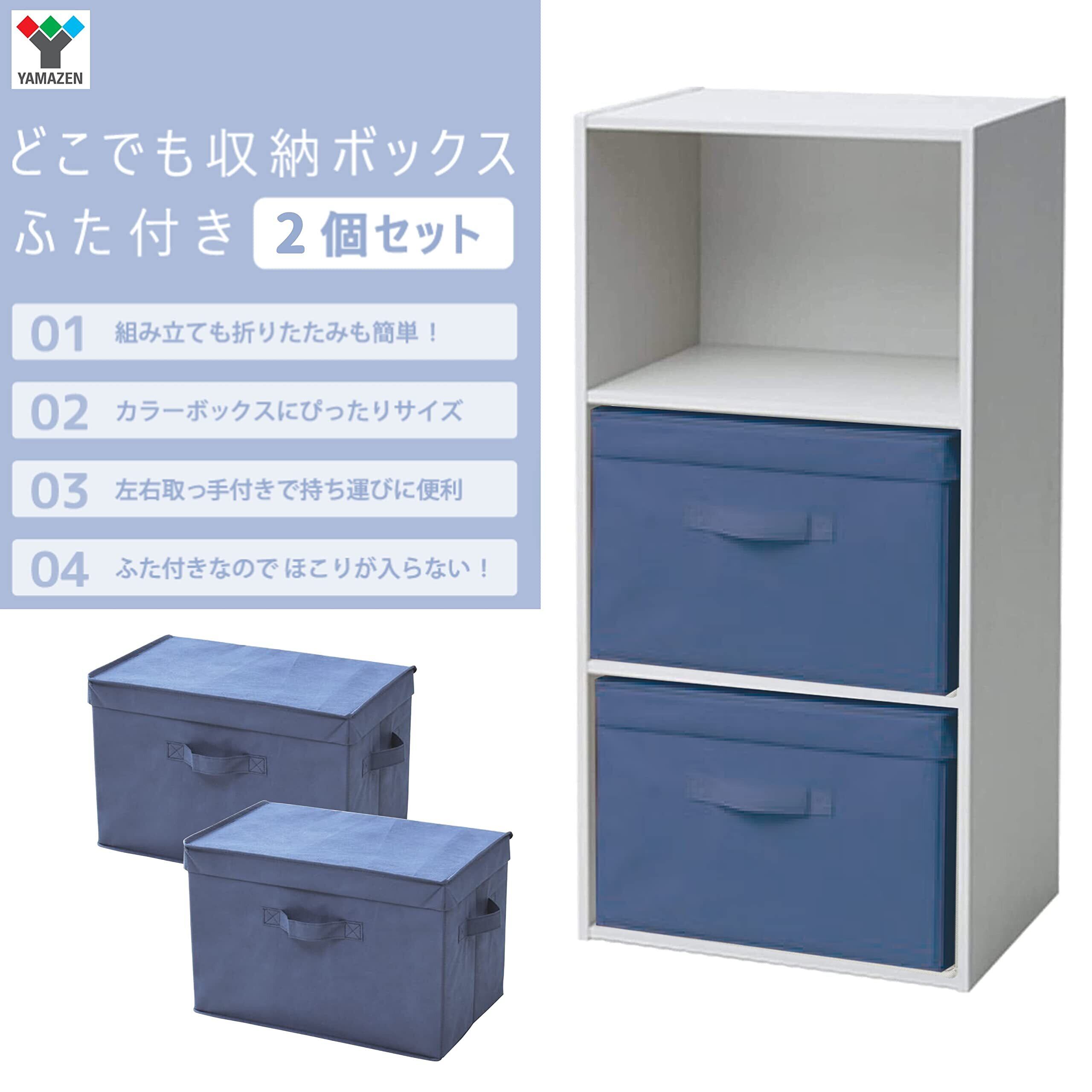 山善(YAMAZEN) ふた付き 収納ボックス 2個組 カラーボックス対応 取っ手付き 幅38×奥行25×高さ25cm 完成品 ネイビー YTCF-2PF(NV)