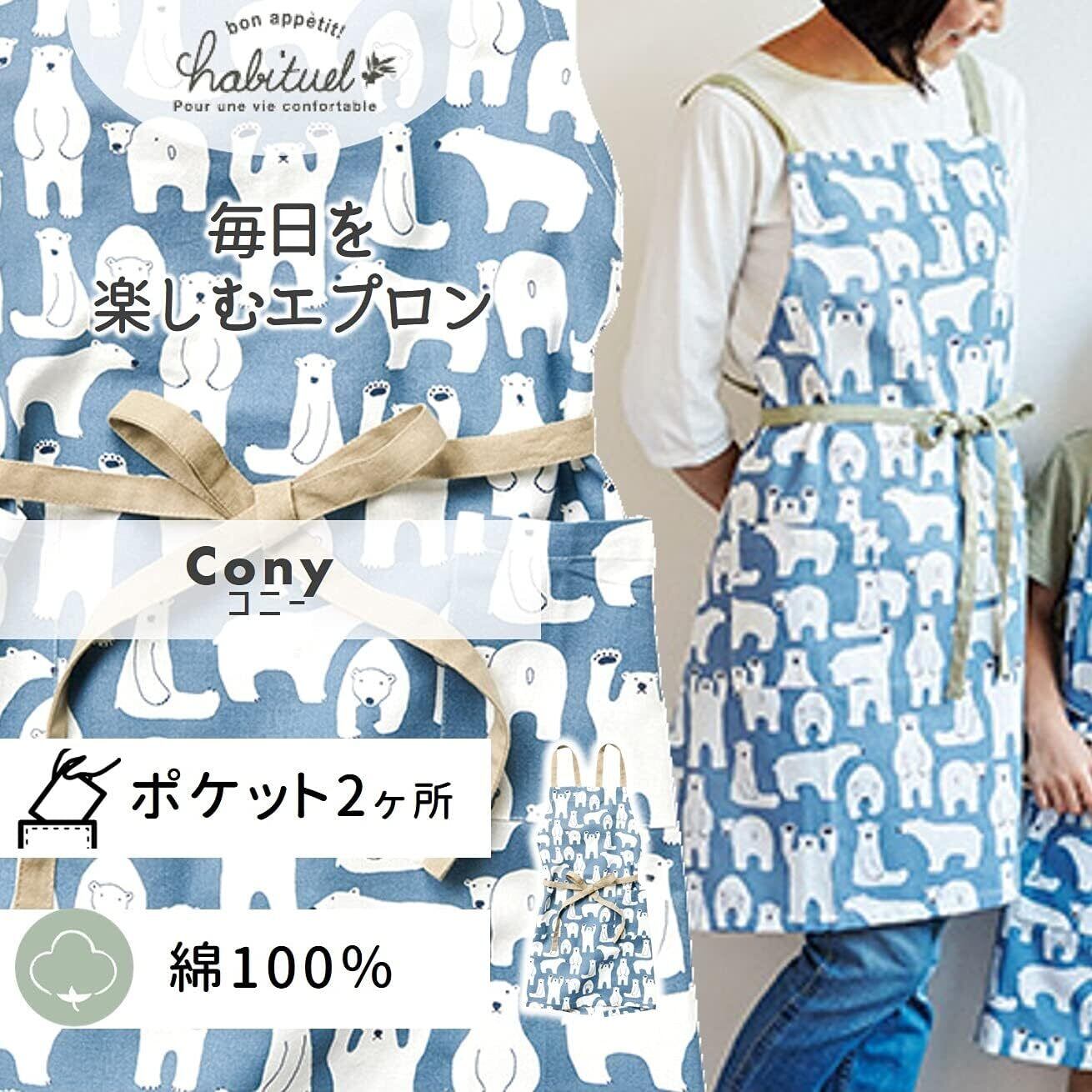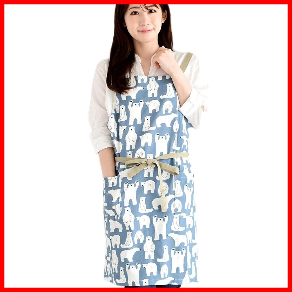 レップ(Rep) エプロン 北欧 ポケット2個付き しろくま 大人用 カフェエプロン 着丈73cm (アビチュアル コニー) ブルー 925 BL プレゼント
