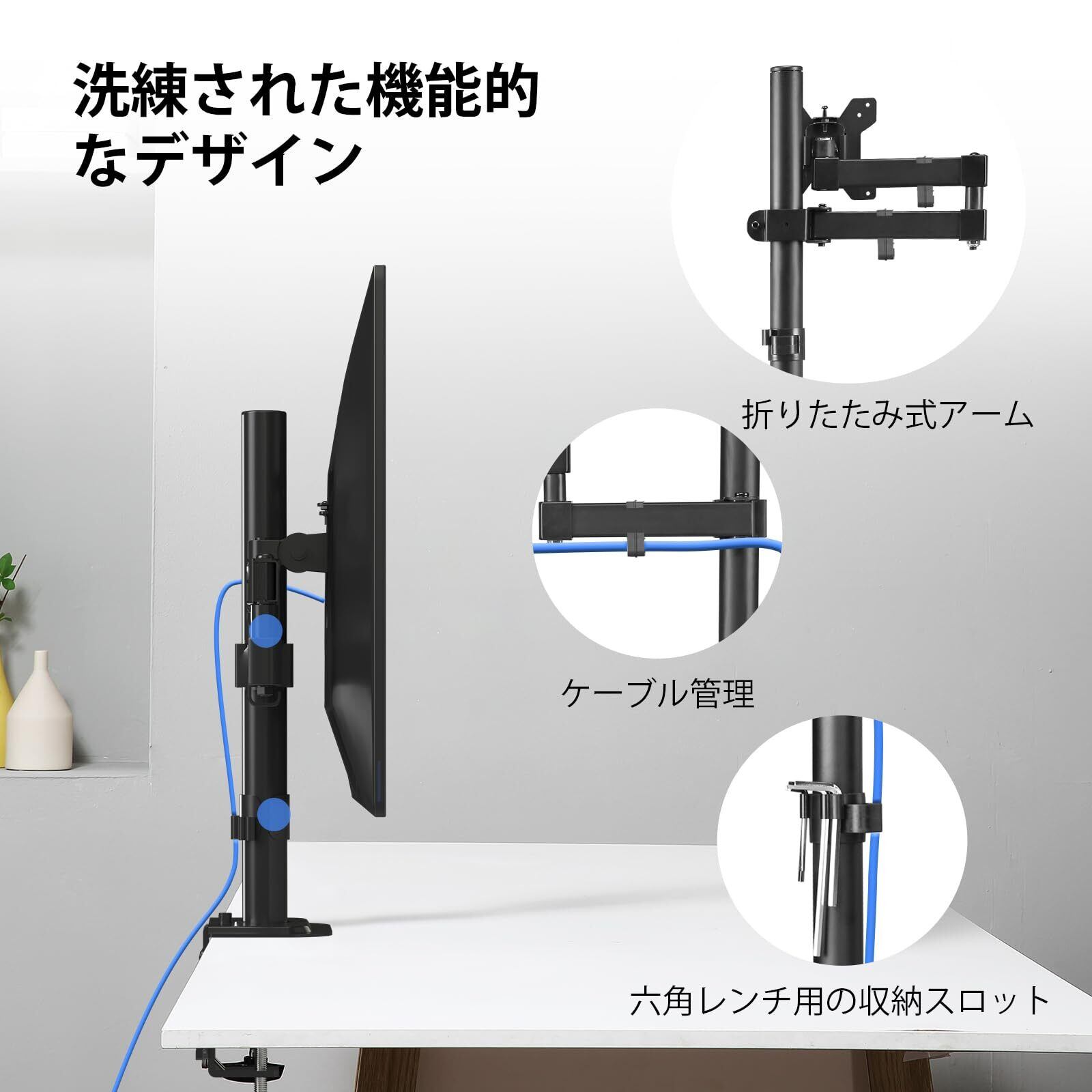 【デスク上のスペースを有効活用】モニターを設置でき、モニターの台座が不要になるため広々とデスク上を使用できます。ケーブル管理で机は清潔で綺麗に整理できます。使わないときはディスプレイアームをたたむことで机上がすっきりします。