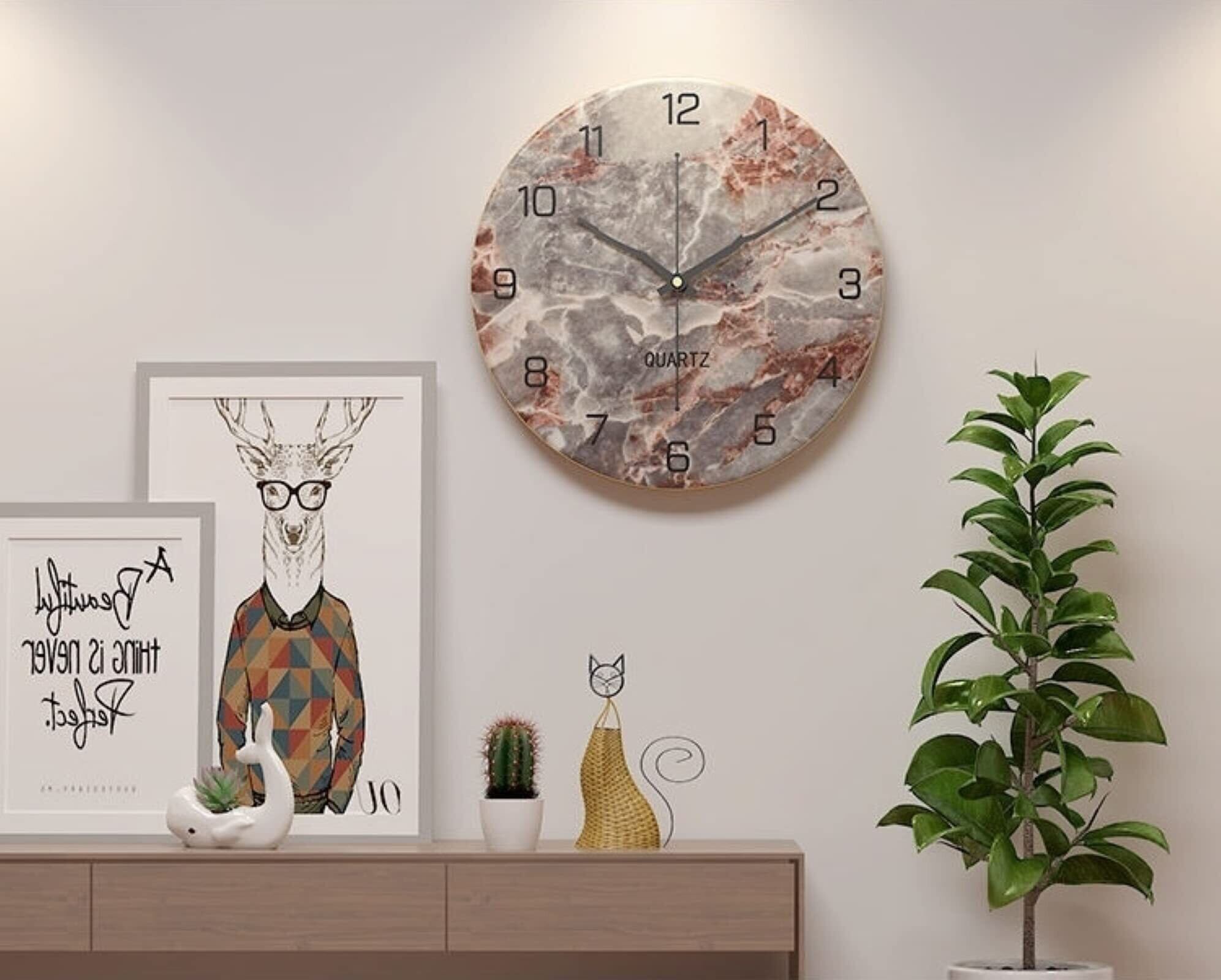 高級 掛け時計 おしゃれ インテリア アンティーク 連続秒針 スイープ式 アート 壁掛け 時計 見やすい 静音 レトロ 北欧 リビング かっこいい アナログ かけ時計 丸形 壁掛け時計 (赤褐色×グレー) | hananoki